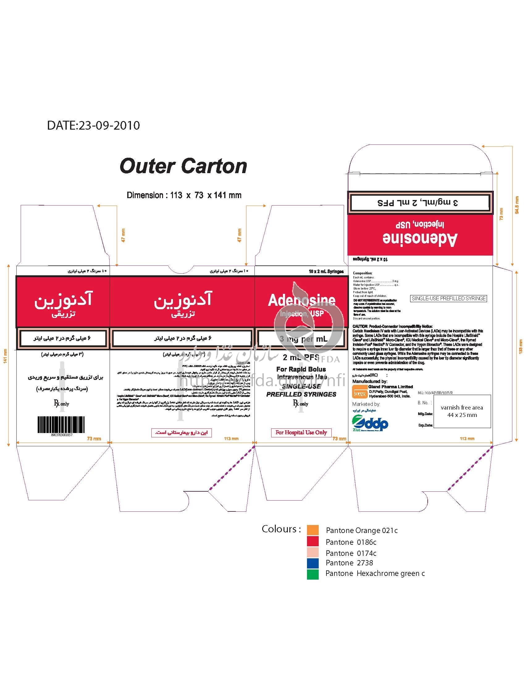 آدنوزین تزریقی پرنترال 3 mg/1mL 2MILLILITER