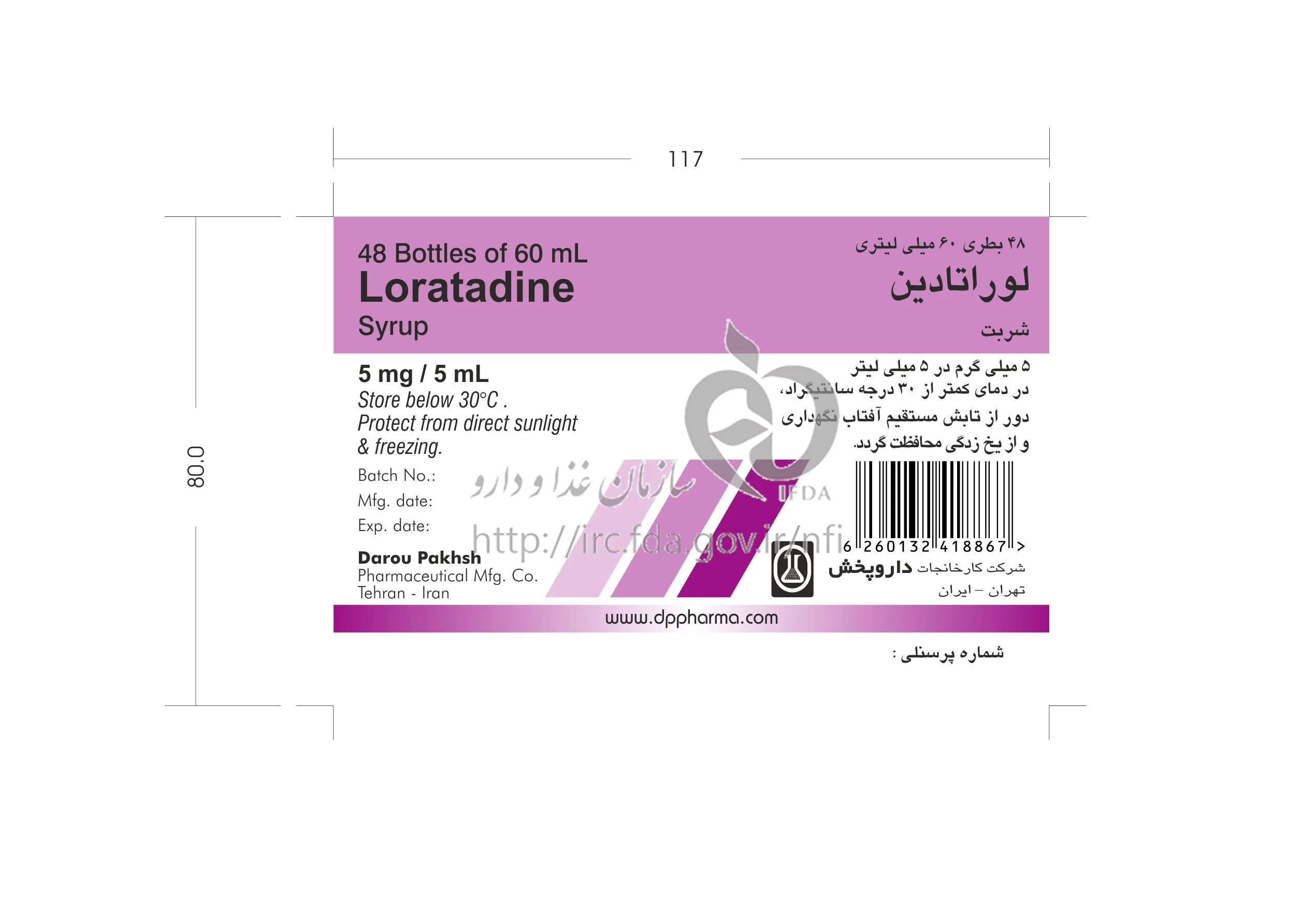 لوراتادین شربت خوراکی 5 mg/5 mL 60MILLILITER