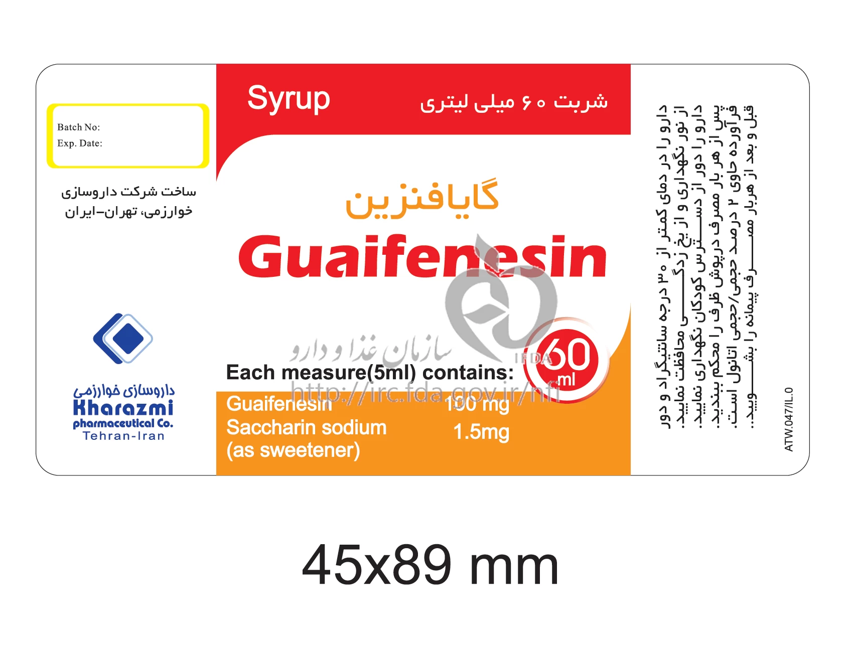 گایافنزین شربت خوراکی 100 mg/5mL 60MILLILITER