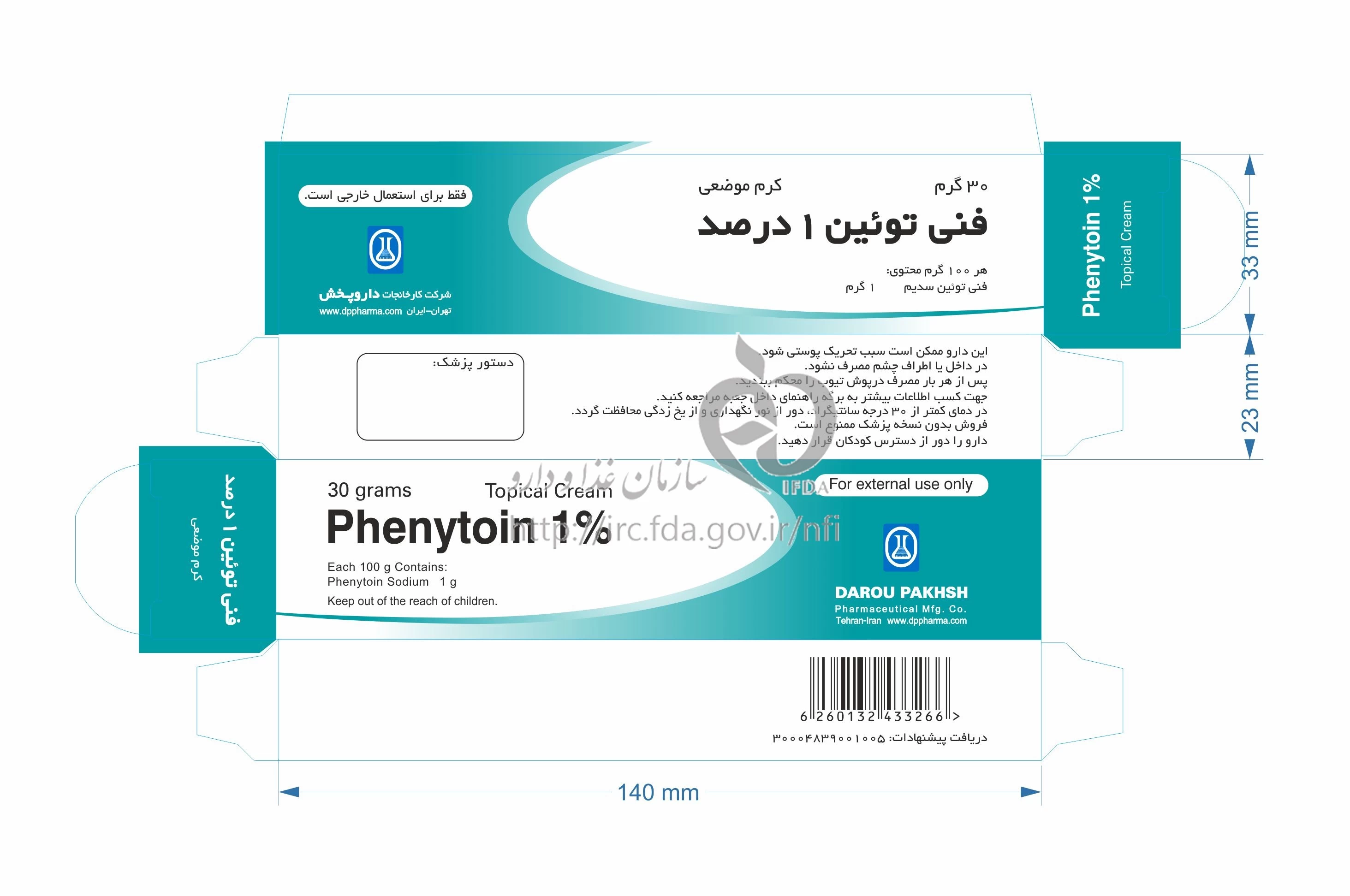 PHENYTOIN SODIUM CREAM TOPICAL 1 % 30GRAM
