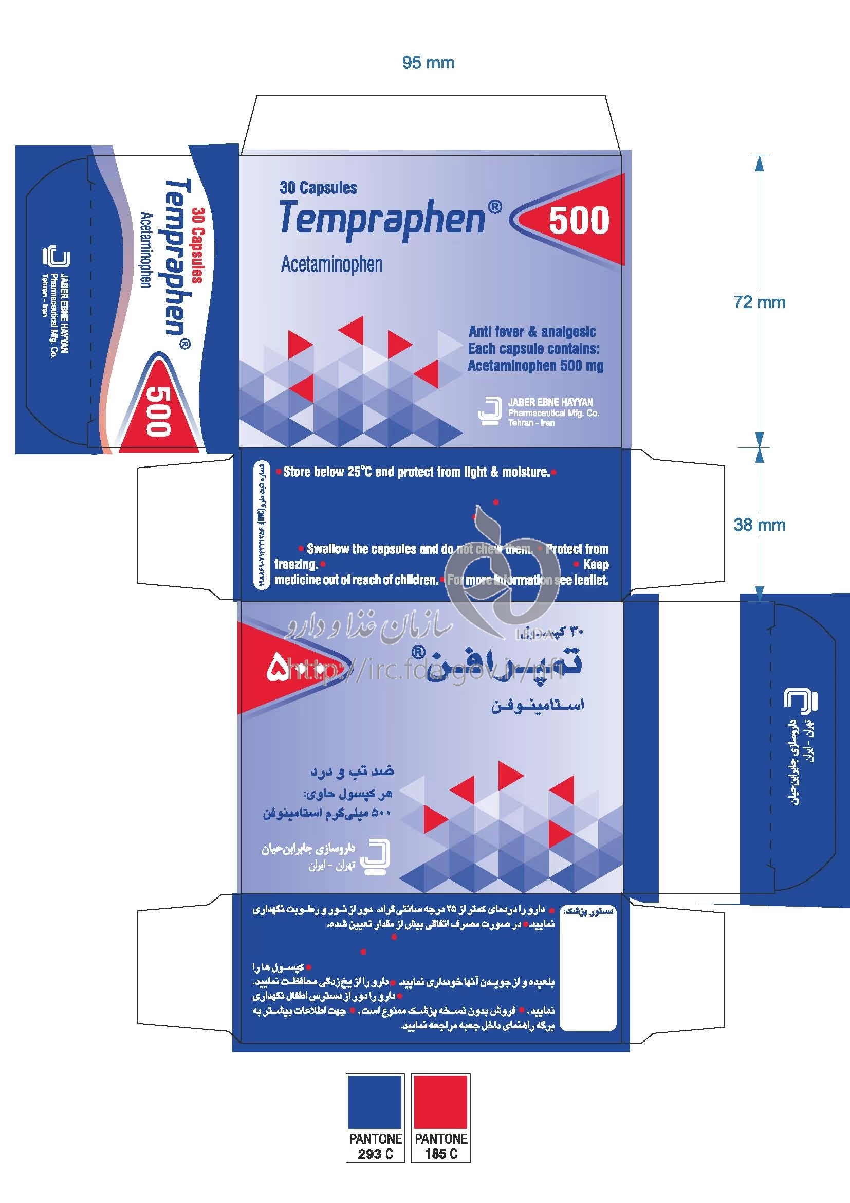 تمپرافن کپسول با روکش ژلاتین خوراکی 500 mg