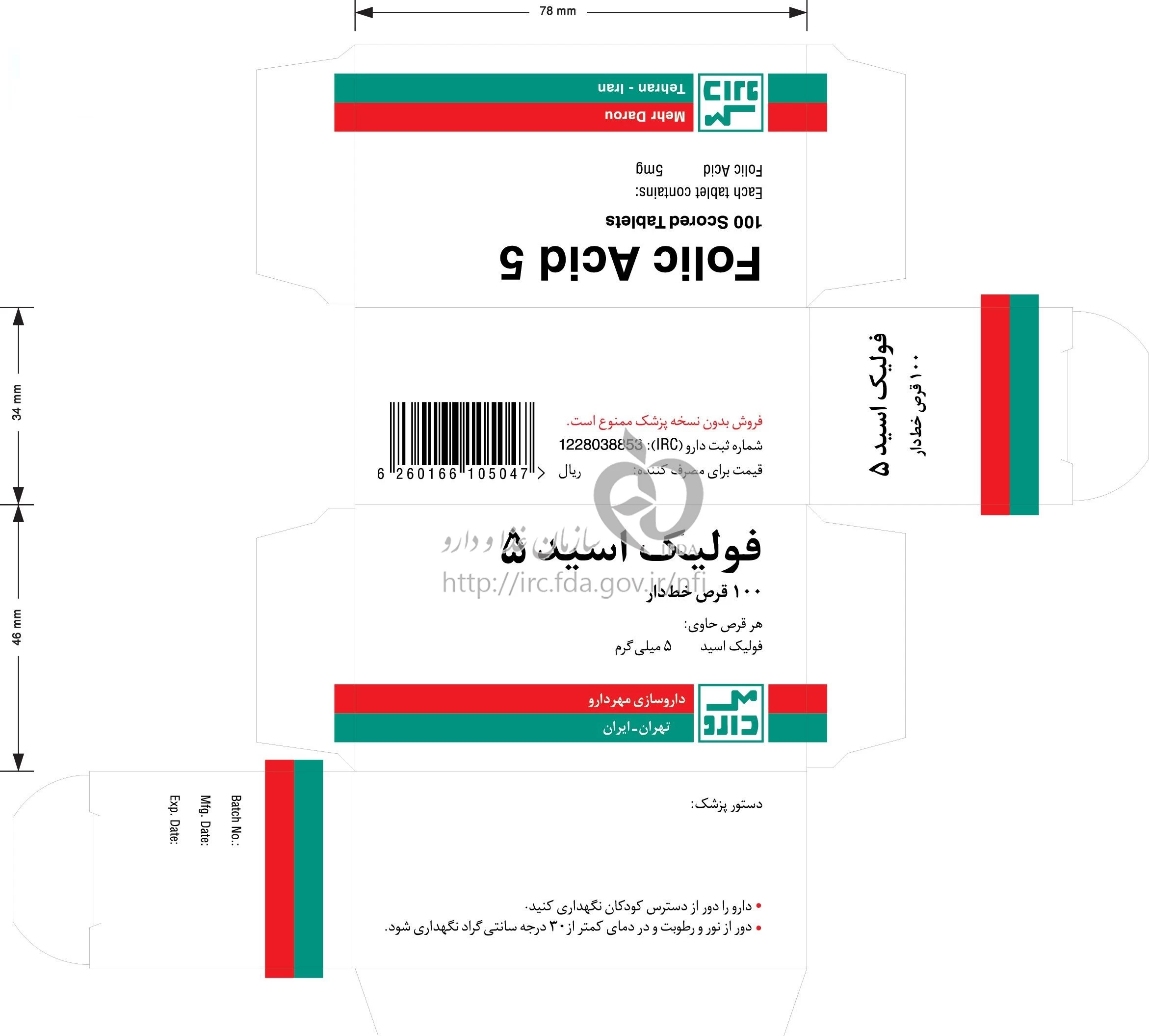 موارد مصرف فولیک اسید قرص خوراکی 5 mg