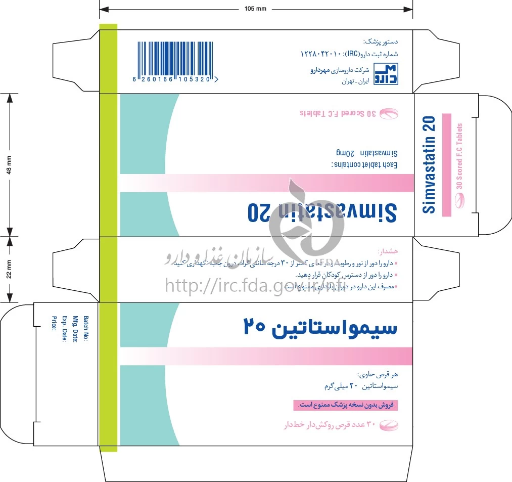دکترها سیمواستاتین قرص خوراکی 20 mg