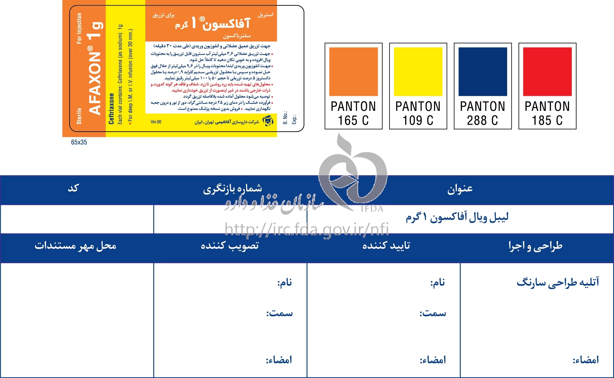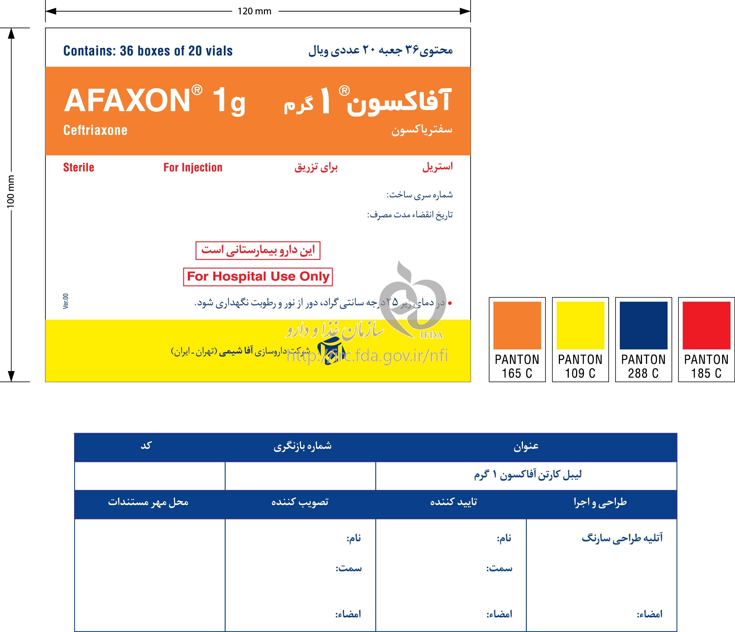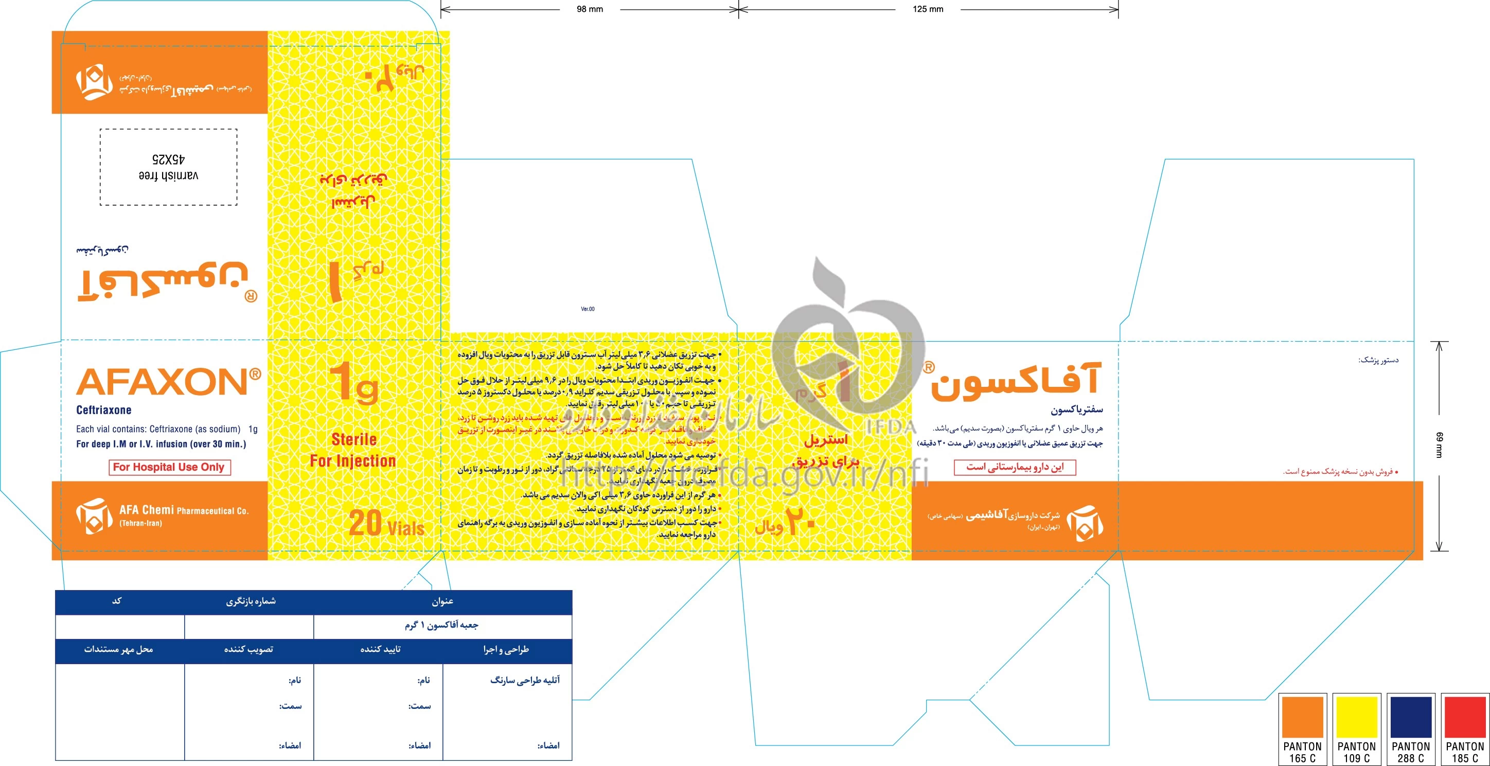 آفاکسون پودر برای تهیه محلول تزریقی پرنترال 1 g