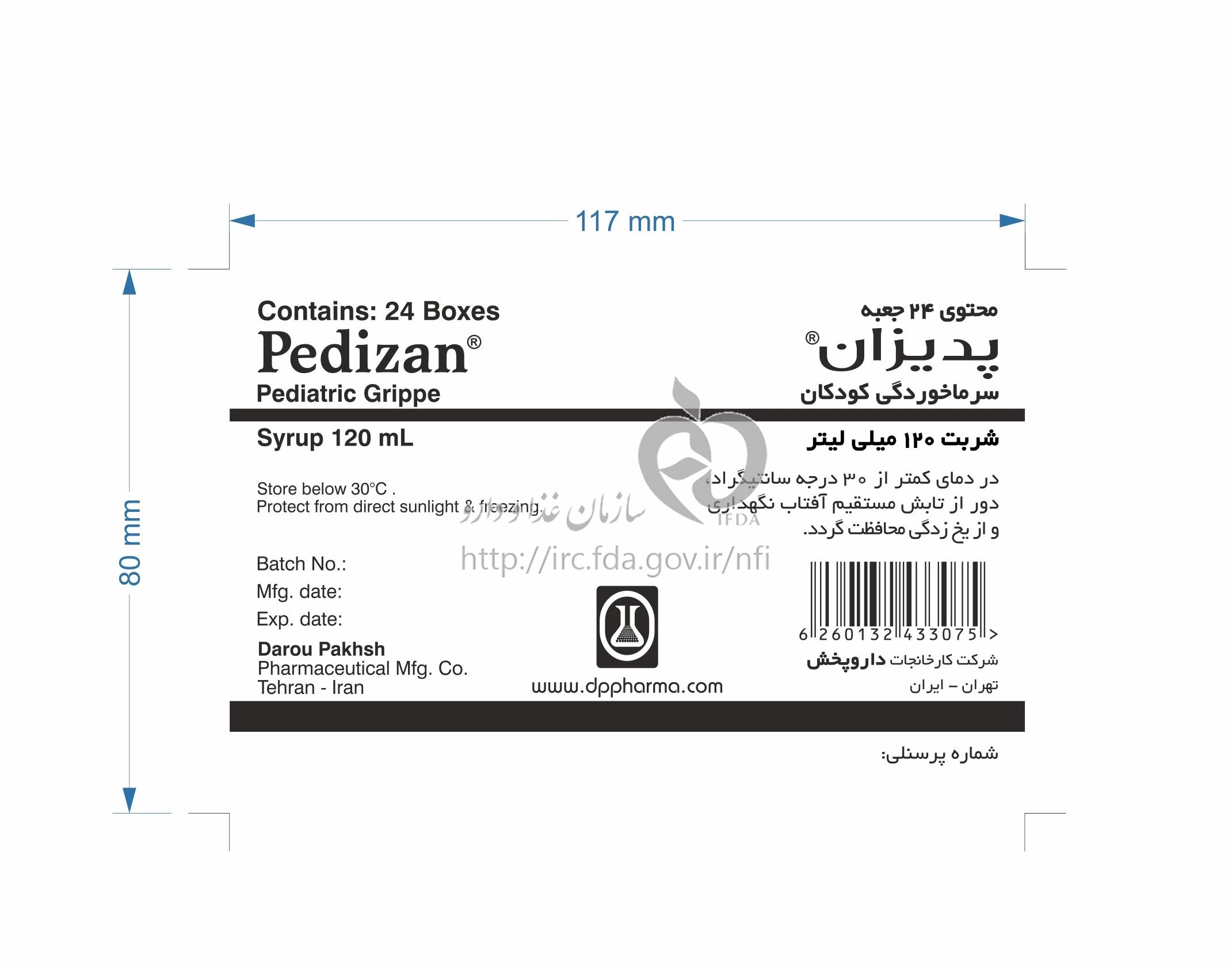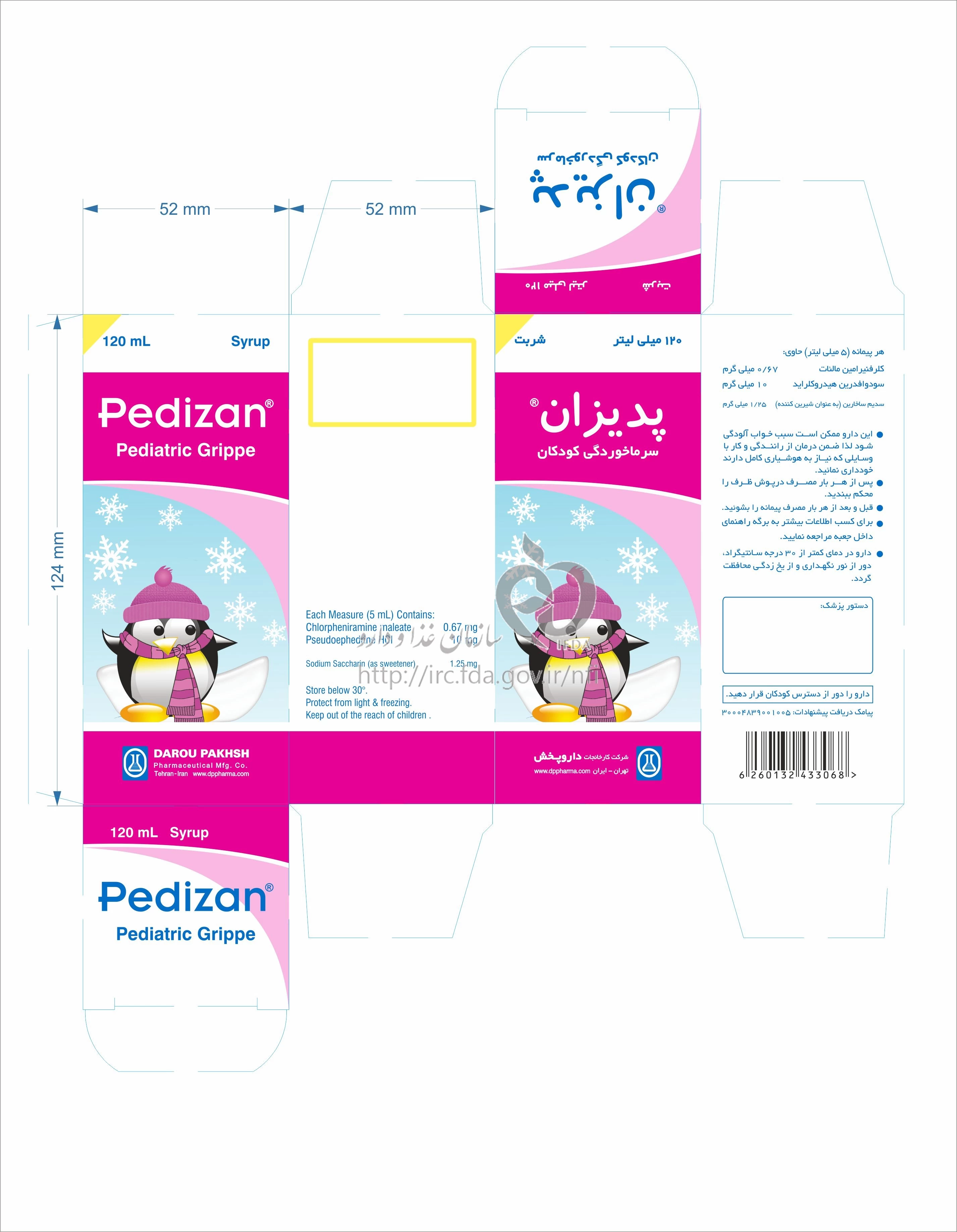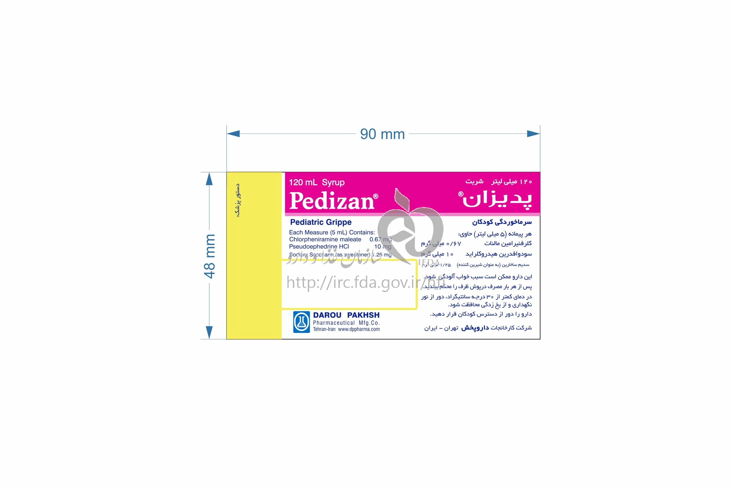 پدیزان شربت خوراکی 0.67 mg/10 mg/5mL 120MILLILITER