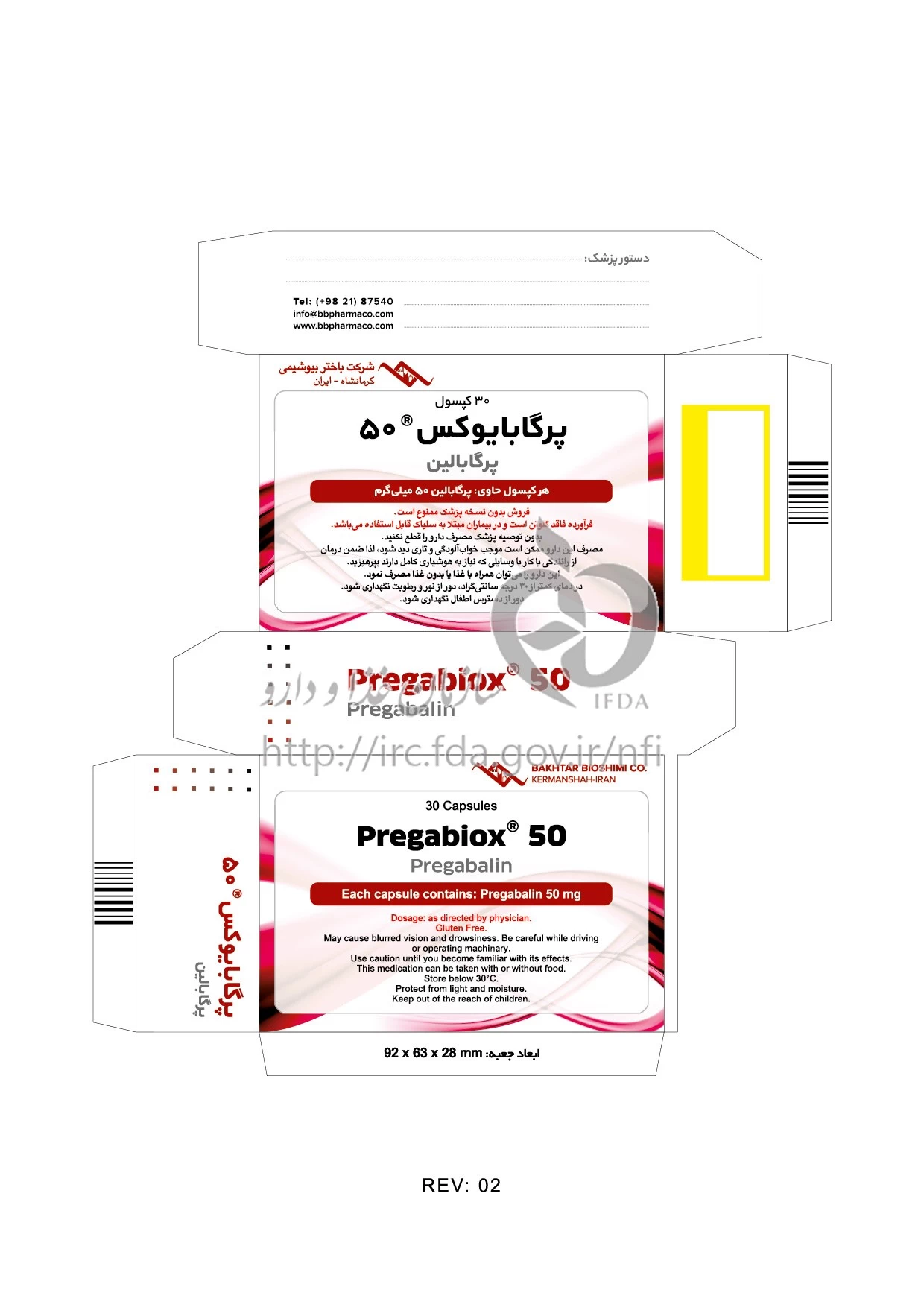 دکترها پرگابایوکس کپسول خوراکی 50 mg