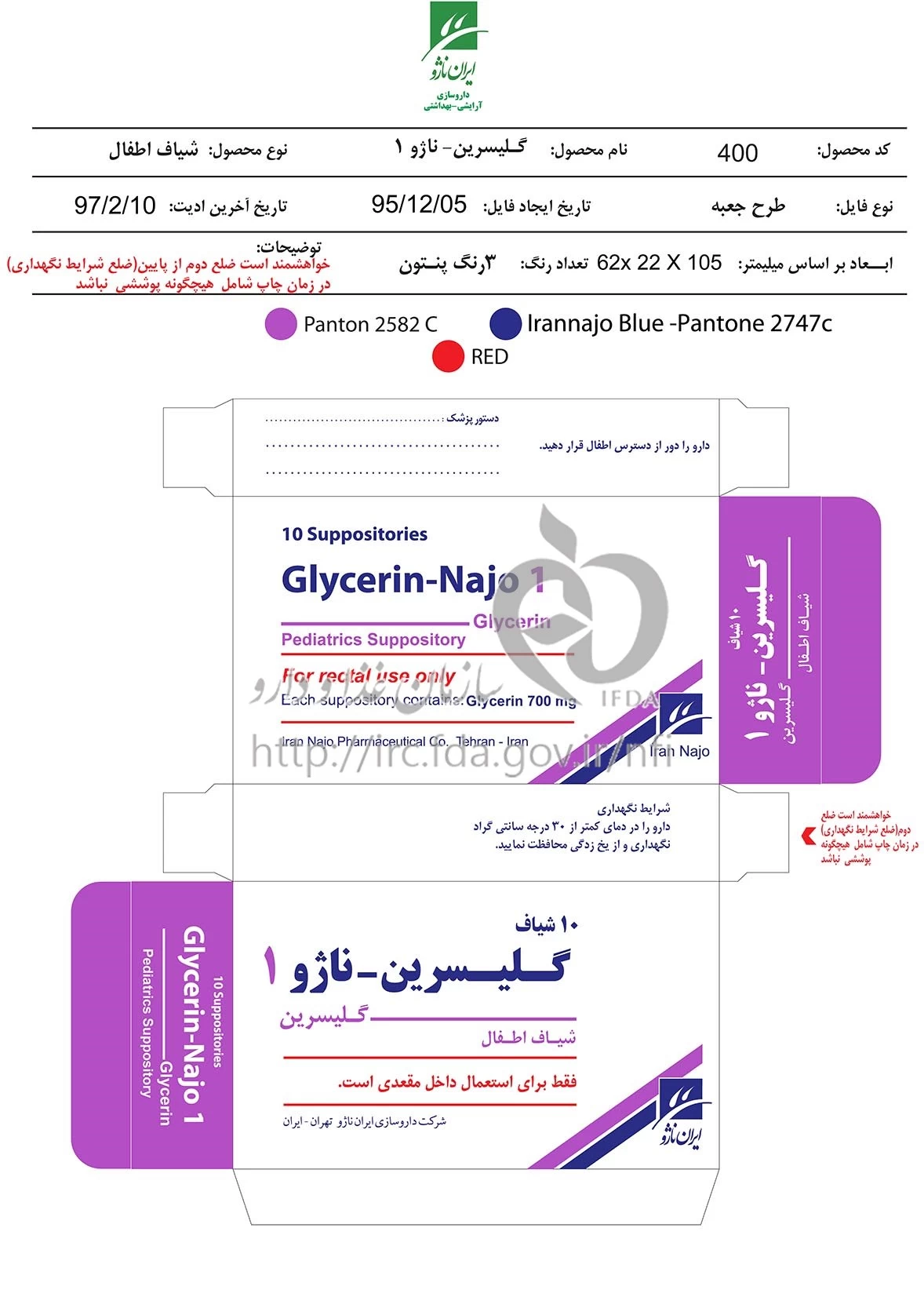 گلیسیرین - ناژو شیاف مقعدی 1 g