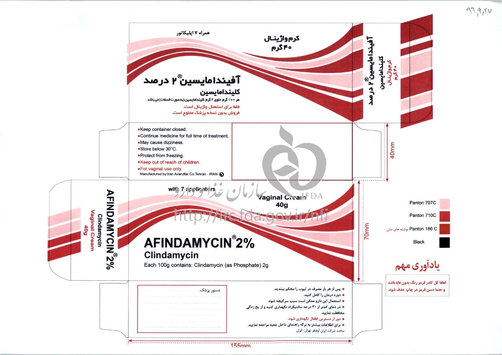 آفیندامایسین کرم واژینال 2 % 40GRAM