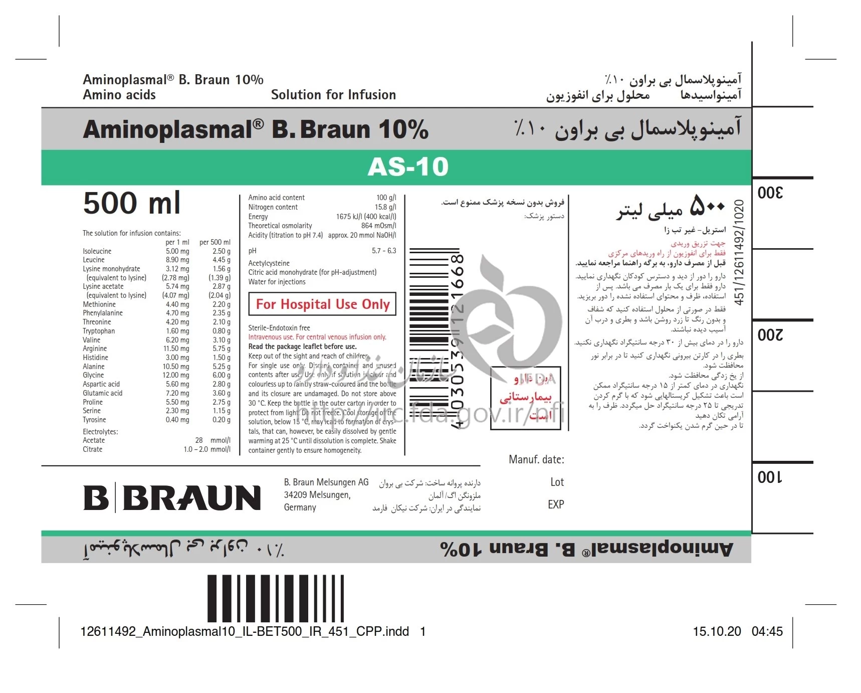 آمینوپلاسمال بی.براون 10 % محلول تزریقی داخل وریدی 5 mg/8.9 mg/5.74 mg/3.12 mg/4.4 mg/4.7 mg/4.2 mg/1.6 mg/6.2 mg/11.5 mg/3 mg/10.5 mg/12 mg/5.6 mg/7.2 mg/5.5 mg/2.3 mg/0.4 mg/1mL 500MILLILITER آمینوپلاسمال بی.براون 10 % محلول تزریقی داخل وریدی 5 mg/8.9 mg/5.74 mg/3.12 mg/4.4 mg/4.7 mg/4.2 mg/1.6 mg/6.2 mg/11.5 mg/3 mg/10.5 mg/12 mg/5.6 mg/7.2 mg/5.5 mg/2.3 mg/0.4 mg/1mL 1000MILLILITER آمینوپلاسمال بی.براون 10 % محلول تزریقی داخل وریدی 5 mg/8.9 mg/5.74 mg/3.12 mg/4.4 mg/4.7 mg/4.2 mg/1.6 mg/6.2 mg/11.5 mg/3 mg/10.5 mg/12 mg/5.6 mg/7.2 mg/5.5 mg/2.3 mg/0.4 mg/1mL 250MILLILITER آمینوپلاسمال بی.براون 10 % محلول تزریقی داخل وریدی 5 mg/8.9 mg/5.74 mg/3.12 mg/4.4 mg/4.7 mg/4.2 mg/1.6 mg/6.2 mg/11.5 mg/3 mg/10.5 mg/12 mg/5.6 mg/7.2 mg/5.5 mg/2.3 mg/0.4 mg/1mL 500MILLILITER آمینوپلاسمال بی.براون 10 % محلول تزریقی داخل وریدی 5 mg/8.9 mg/5.74 mg/3.12 mg/4.4 mg/4.7 mg/4.2 mg/1.6 mg/6.2 mg/11.5 mg/3 mg/10.5 mg/12 mg/5.6 mg/7.2 mg/5.5 mg/2.3 mg/0.4 mg/1mL 250MILLILITER آمینوپلاسمال بی.براون 10 % محلول تزریقی داخل وریدی 5 mg/8.9 mg/5.74 mg/3.12 mg/4.4 mg/4.7 mg/4.2 mg/1.6 mg/6.2 mg/11.5 mg/3 mg/10.5 mg/12 mg/5.6 mg/7.2 mg/5.5 mg/2.3 mg/0.4 mg/1mL 1000MILLILITER آمینوپلاسمال بی.براون 10 % محلول تزریقی داخل وریدی 5 mg/8.9 mg/5.74 mg/3.12 mg/4.4 mg/4.7 mg/4.2 mg/1.6 mg/6.2 mg/11.5 mg/3 mg/10.5 mg/12 mg/5.6 mg/7.2 mg/5.5 mg/2.3 mg/0.4 mg/1mL 500MILLILITER