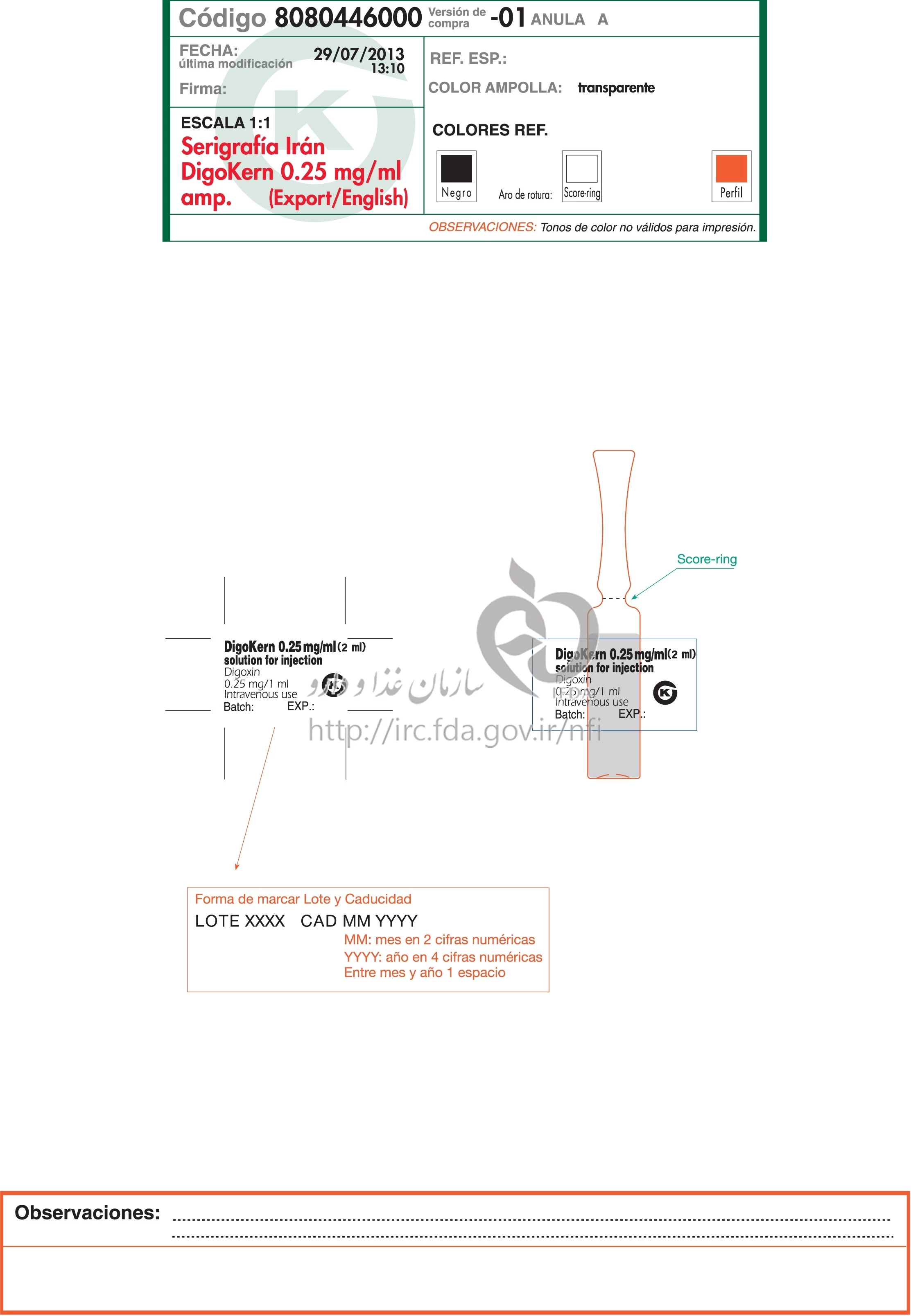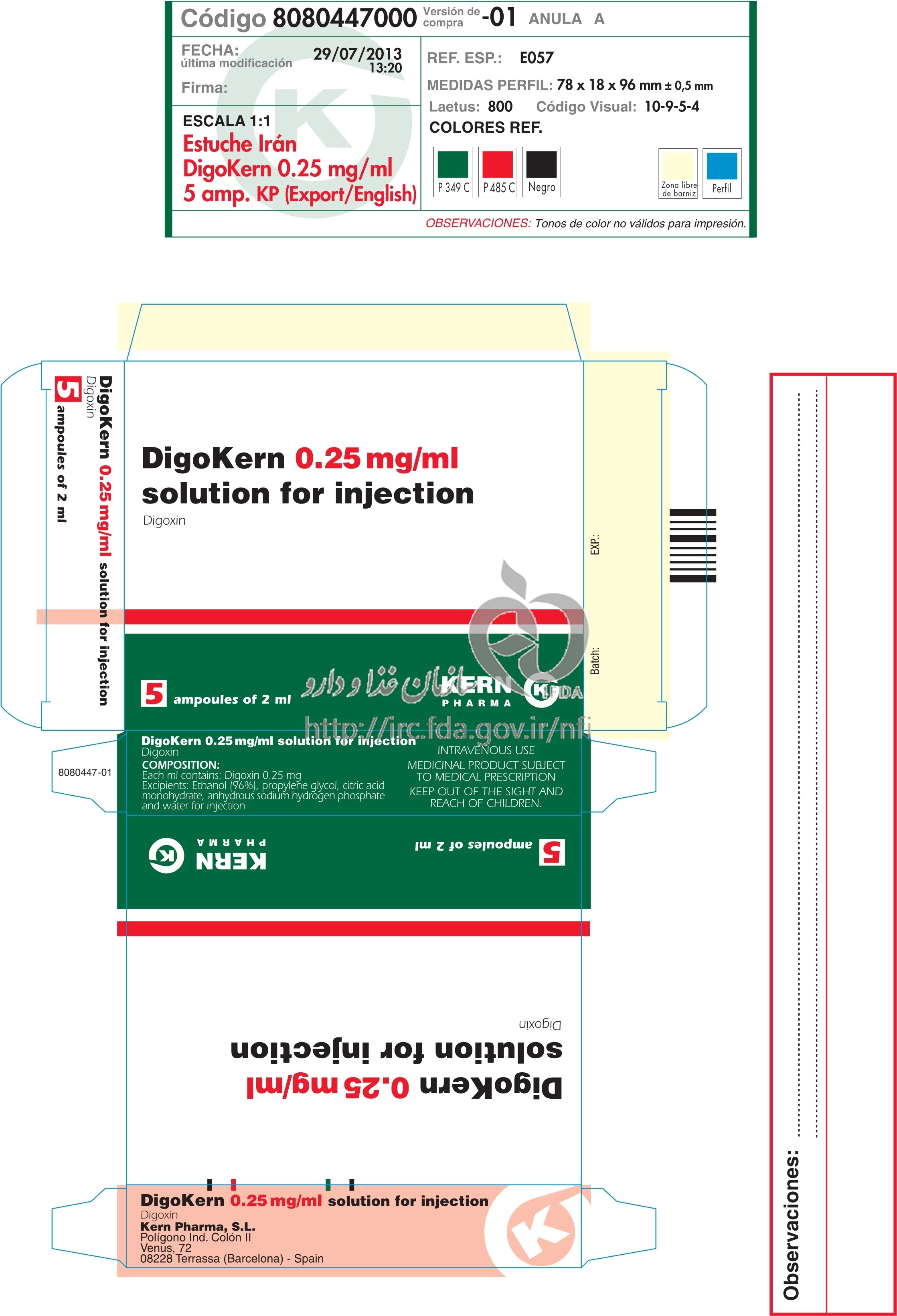 دیگوکرن تزریقی پرنترال 0.25 mg/1mL 2MILLILITER
