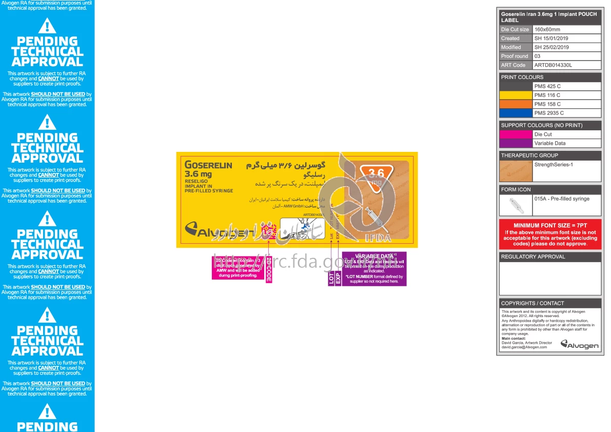 Goserelin Acetate Implant Parenteral 3.6 mg یک داروی آنتیافسردگی است و برای درمان سرطان پروستات در مردان و سرطان پستان در زنان استفاده میشود. این دارو به صورت زیر پوستی در بازویی یا بافت چربی شکم تزریق میشود. معمولاً یکبار در ماه تزریق میشود. قبل از مصرف این دارو، بهتر است به دکتر خود مراجعه کنید و دستورالعملهای دقیق و توصیههای لازم را از او دریافت کنید. همچنین در صورت بروز هرگونه علائم ناخواسته، به دکتر خود اطلاع دهید.