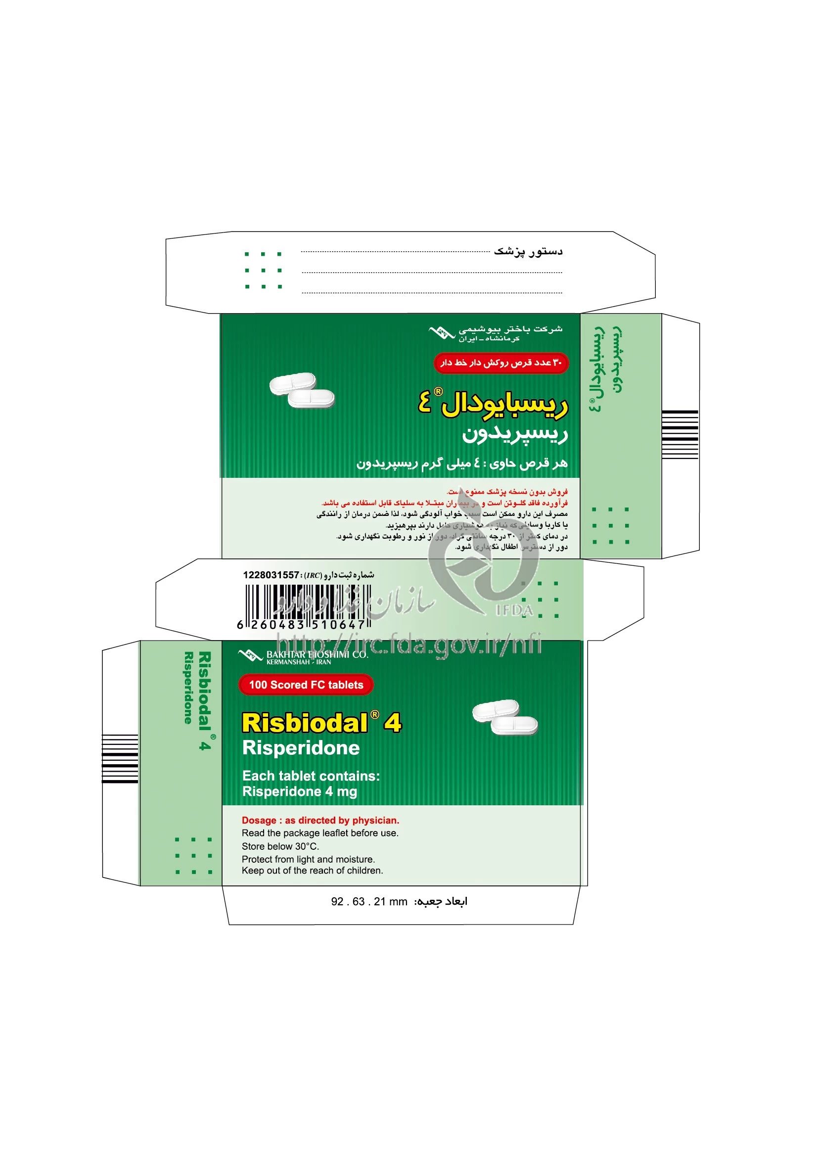 نکات قابل توصیه ریسبایودال قرص خوراکی 4 mg