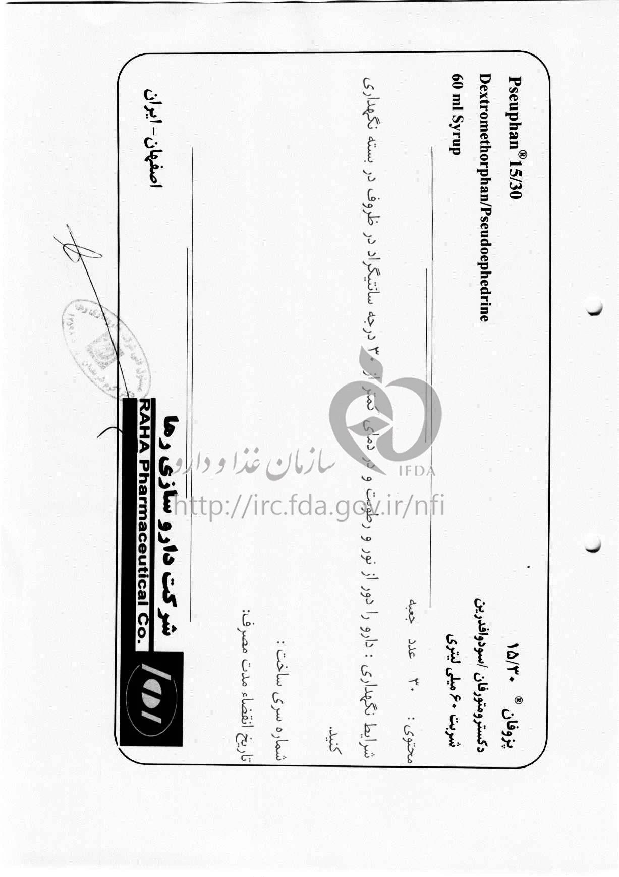 پزوفان شربت خوراکی 15 mg/30 mg/5mL