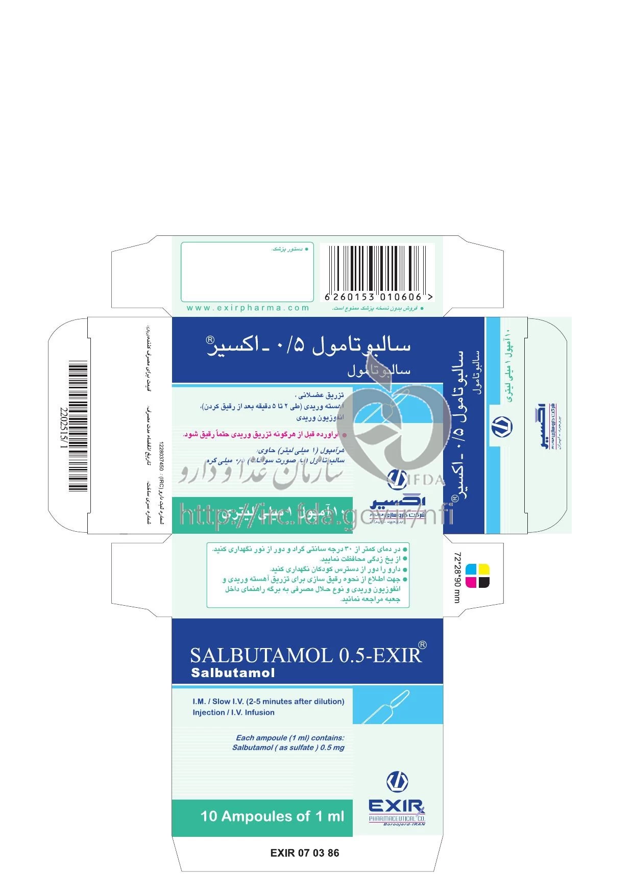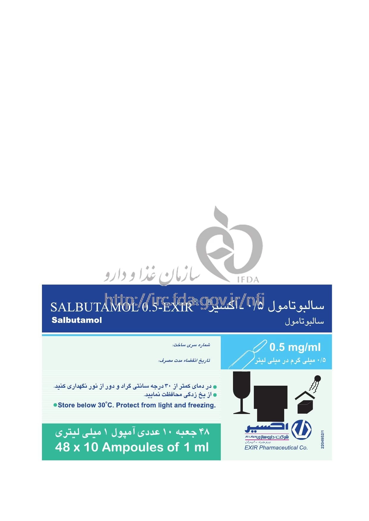 سالبوتامول تزریقی پرنترال 0.5 mg/1mL