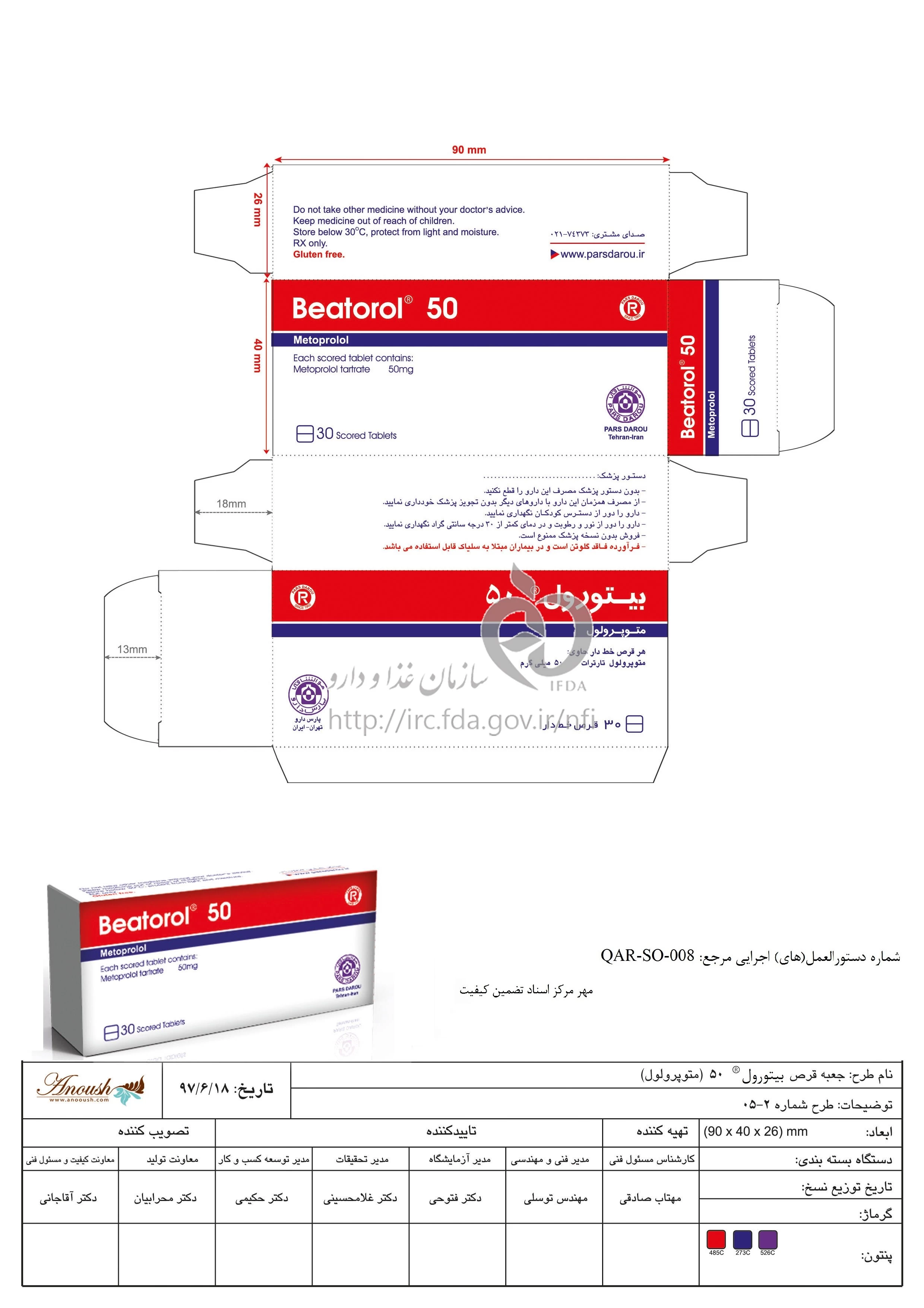 بیتورول قرص خوراکی 50 mg