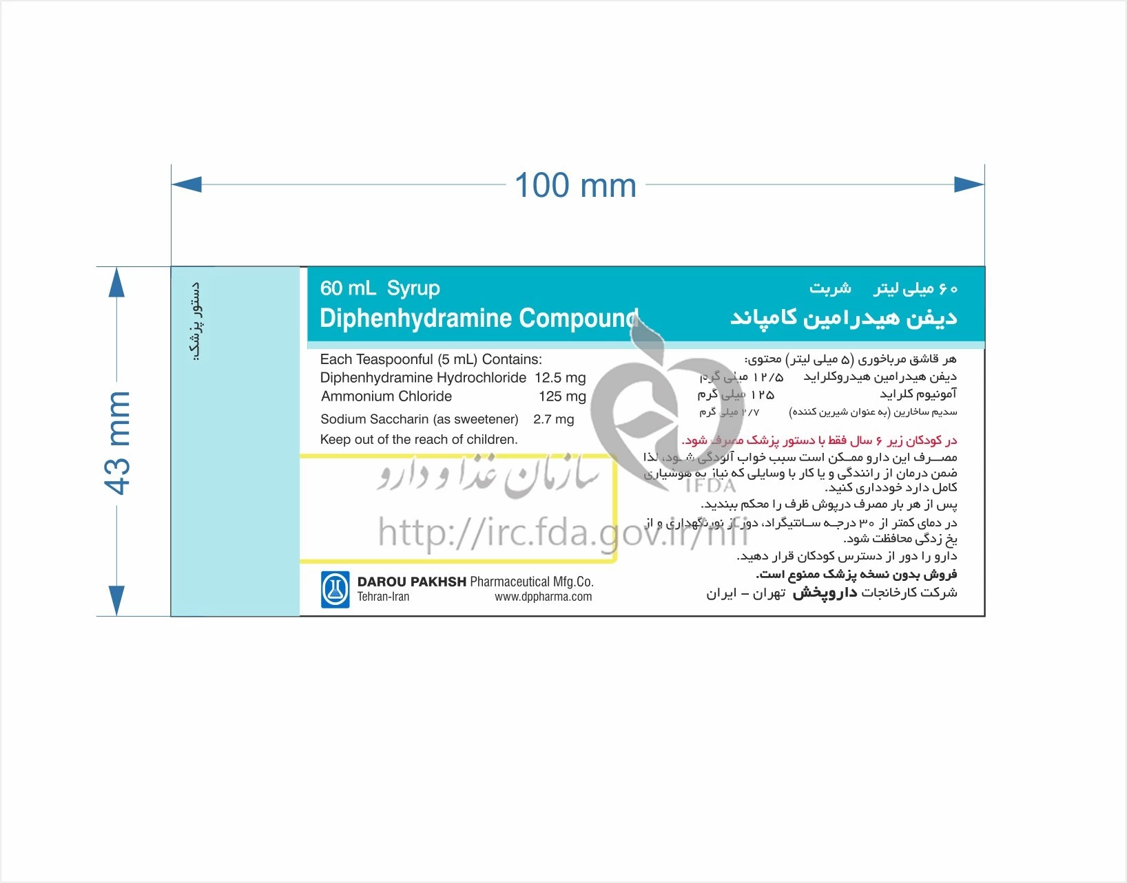 دیفن هیدرامین کامپاند شربت خوراکی 12.5 mg/125 mg/5mL 60MILLILITER