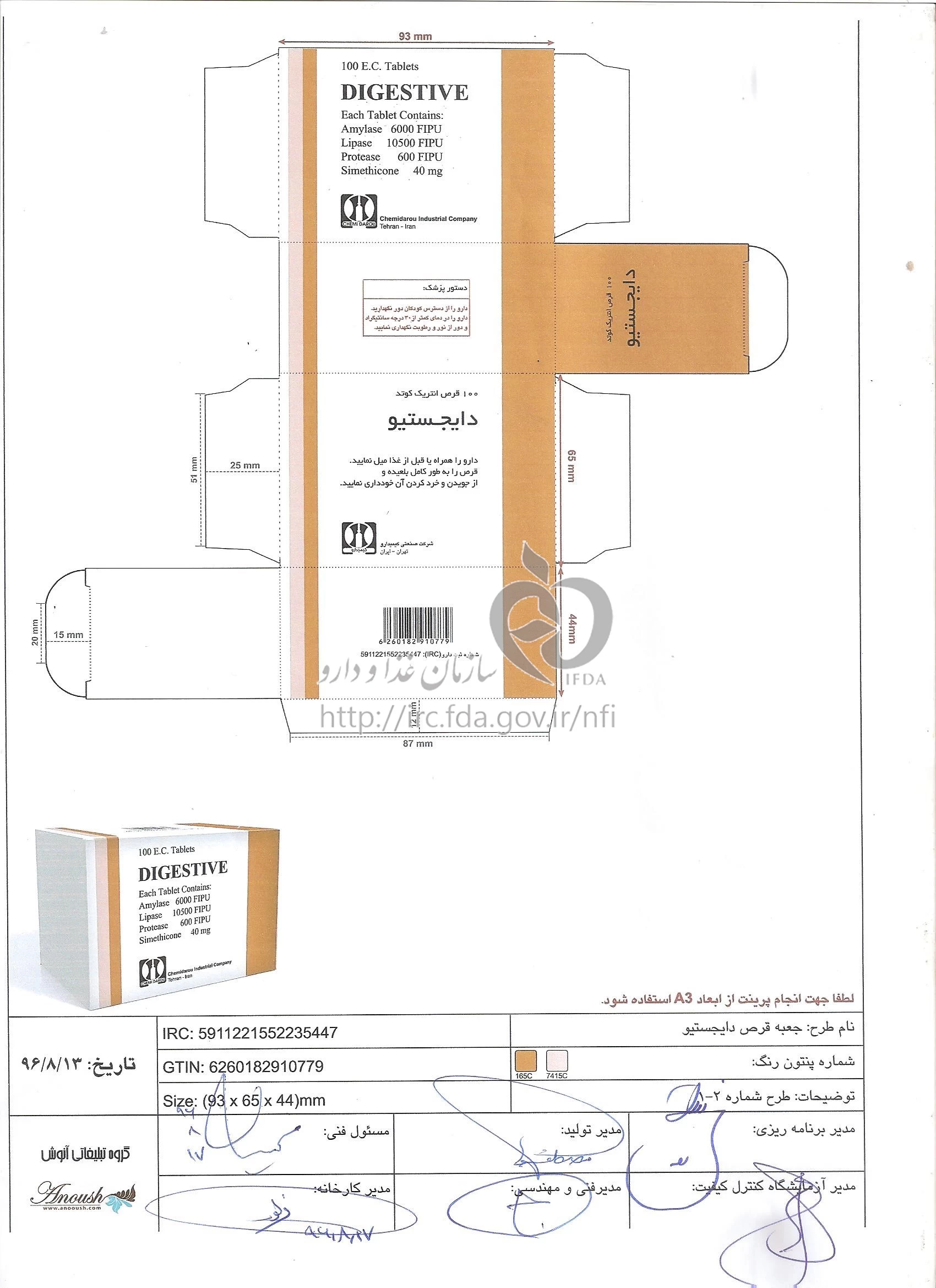 دایجستیو قرص انتریک کوتد خوراکی 40 mg/6000 [iU]/10500 [iU]/600 [iU]
