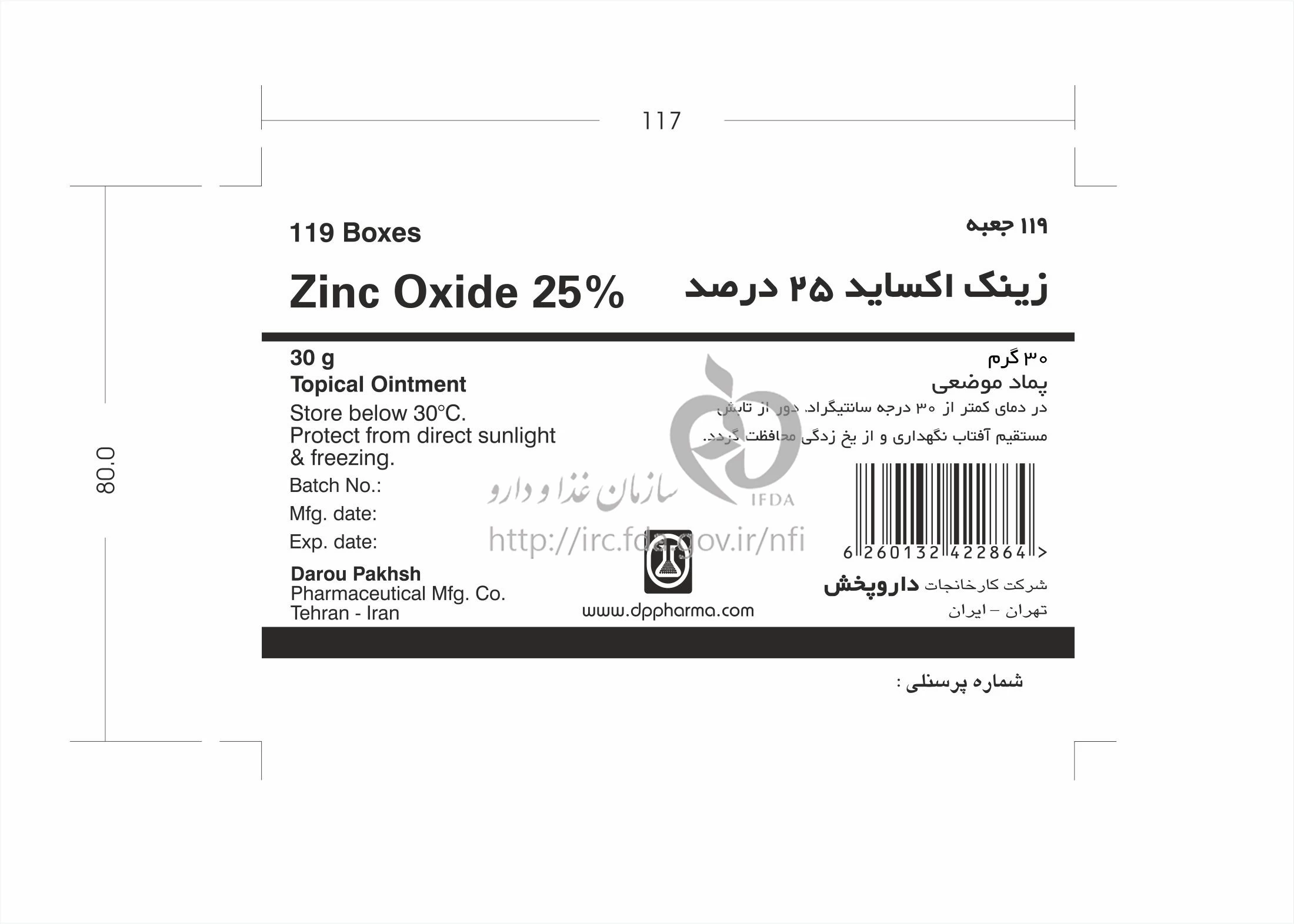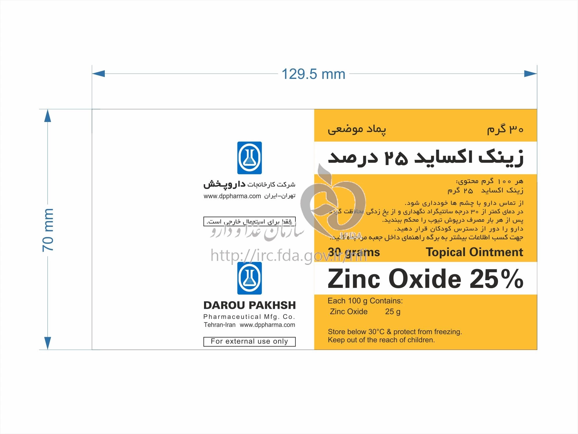 زینک اکساید پماد موضعی 25 % 30GRAM