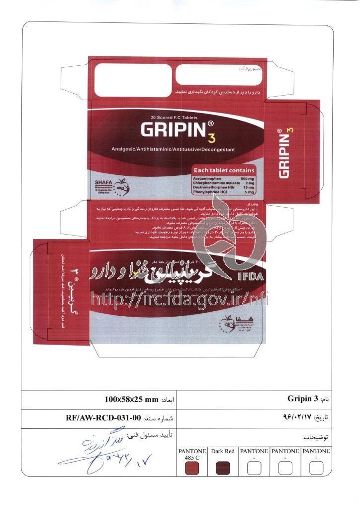 گریپین قرص خوراکی 15 mg/2 mg/5 mg/500 mg