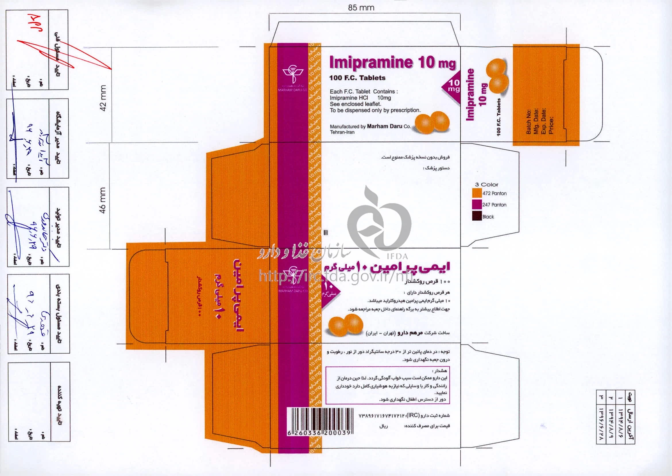 ایمیپرامین هیدروکلرید (Imipramine Hydrochloride) یک نوع داروی ضد افسردگی در خانواده داروهای تری‌سیکلیک است. این دارو برای درمان افسردگی، اضطراب، اختلالات خواب و بعضی اختلالات رفتاری مانند افتادگی، بحران وسواسی-عملی (OCD) و اختلالات تحرکی مثل اختلال‌های رفتاری و رشد (enuresis) استفاده می‌شود. نحوه مصرف داروی ایمیپرامین هیدروکلرید باید بر اساس دستور پزشک متخصص و به دقت رعایت شود. این دارو را معمولاً به صورت قرص 10 میلی‌گرم مصرف می‌کنند و معمولاً به‌صورت روزانه دو بار خورده می‌شود. درمان با ایمیپرامین هیدروکلرید ممکن است چند هفته طول بکشد تا تأثیرات کامل دارو روی بیمار بروز کند. همچنین، میزان دوز دارو باید به شدت درمانی تدریجی افزایش یابد و باید با دقت رعایت شود. هرگز نباید دوز این دارو را به‌طور خودسرانه تغییر داد. بعضی از عوارض جانبی این دارو شامل خشکی دهان، گزگزی، خواب آلودگی، ضعف عضلانی، افزایش وزن و سرگیجه است. اگر هر یک از این علائم شدیدتر شد، باید به پزشک خود اطلاع دهید.