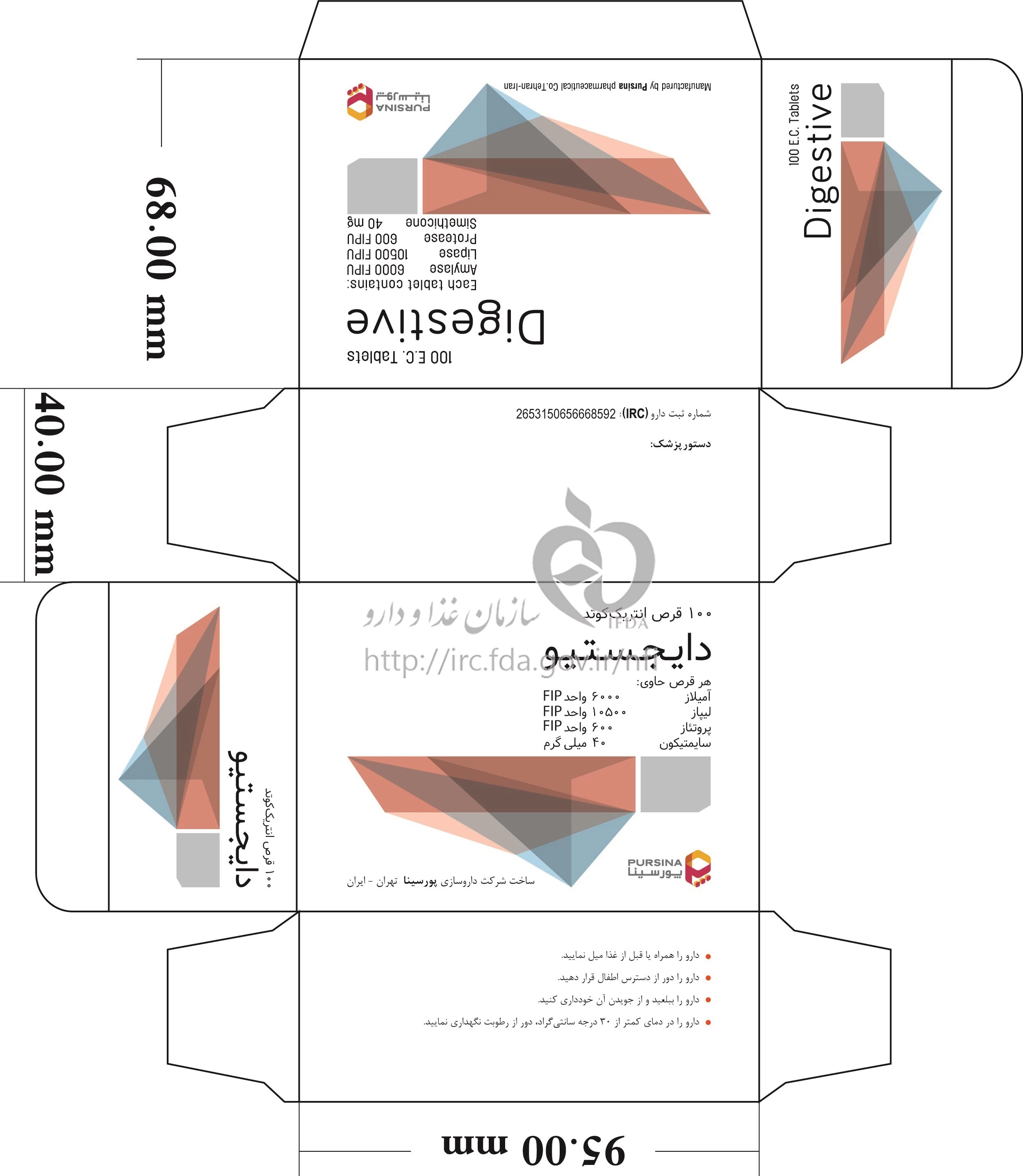 دایجستیو قرص انتریک کوتد خوراکی 40 mg/6000 [iU]/10500 [iU]/600 [iU]