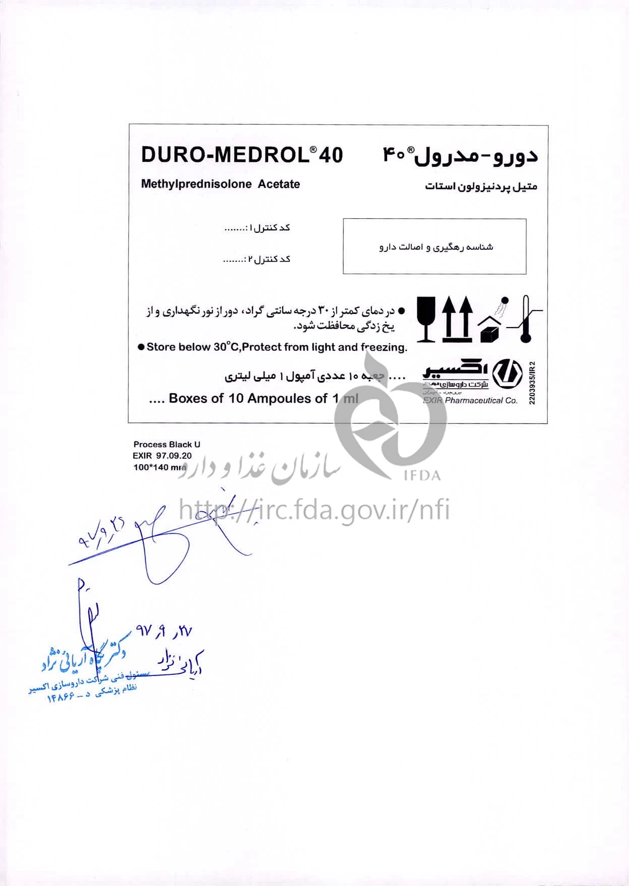 دورو - مدرول سوسپانسیون تزریقی پرنترال 40 mg/1mL