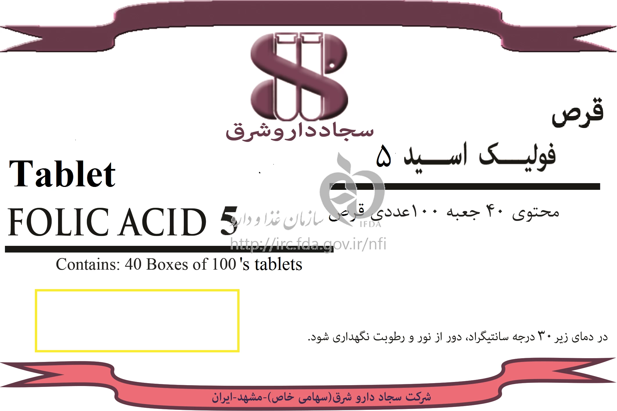 فولیک اسید قرص خوراکی 5 mg