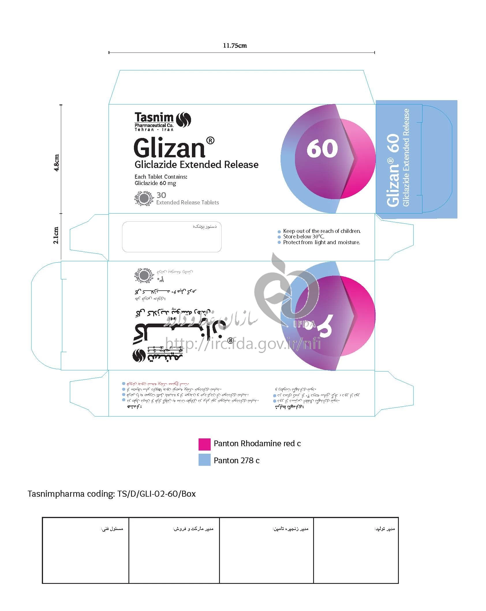 گلیزان قرص پیوسته رهش خوراکی 60 mg