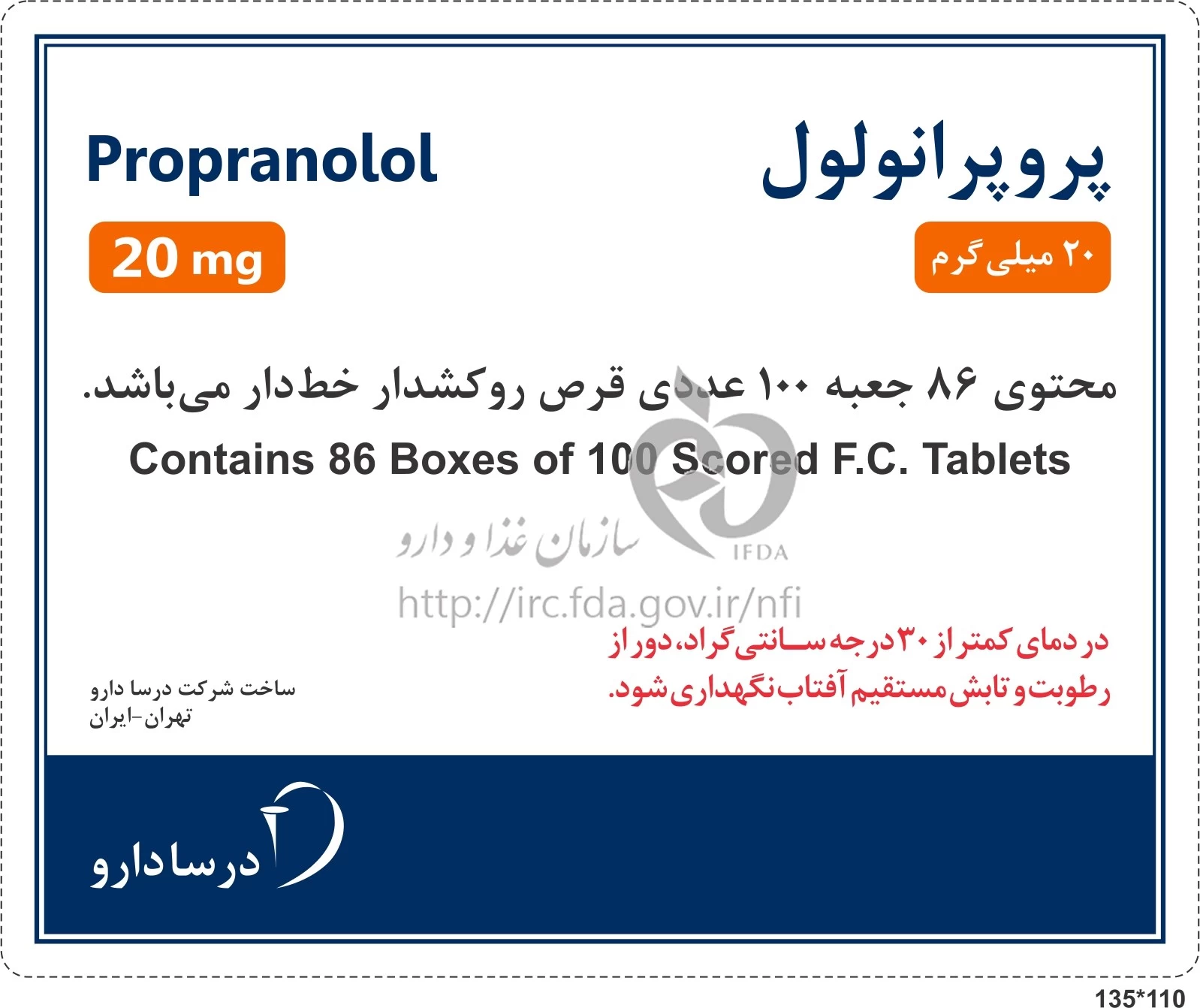 موارد مصرف پروپرانولول قرص خوراکی 20 mg