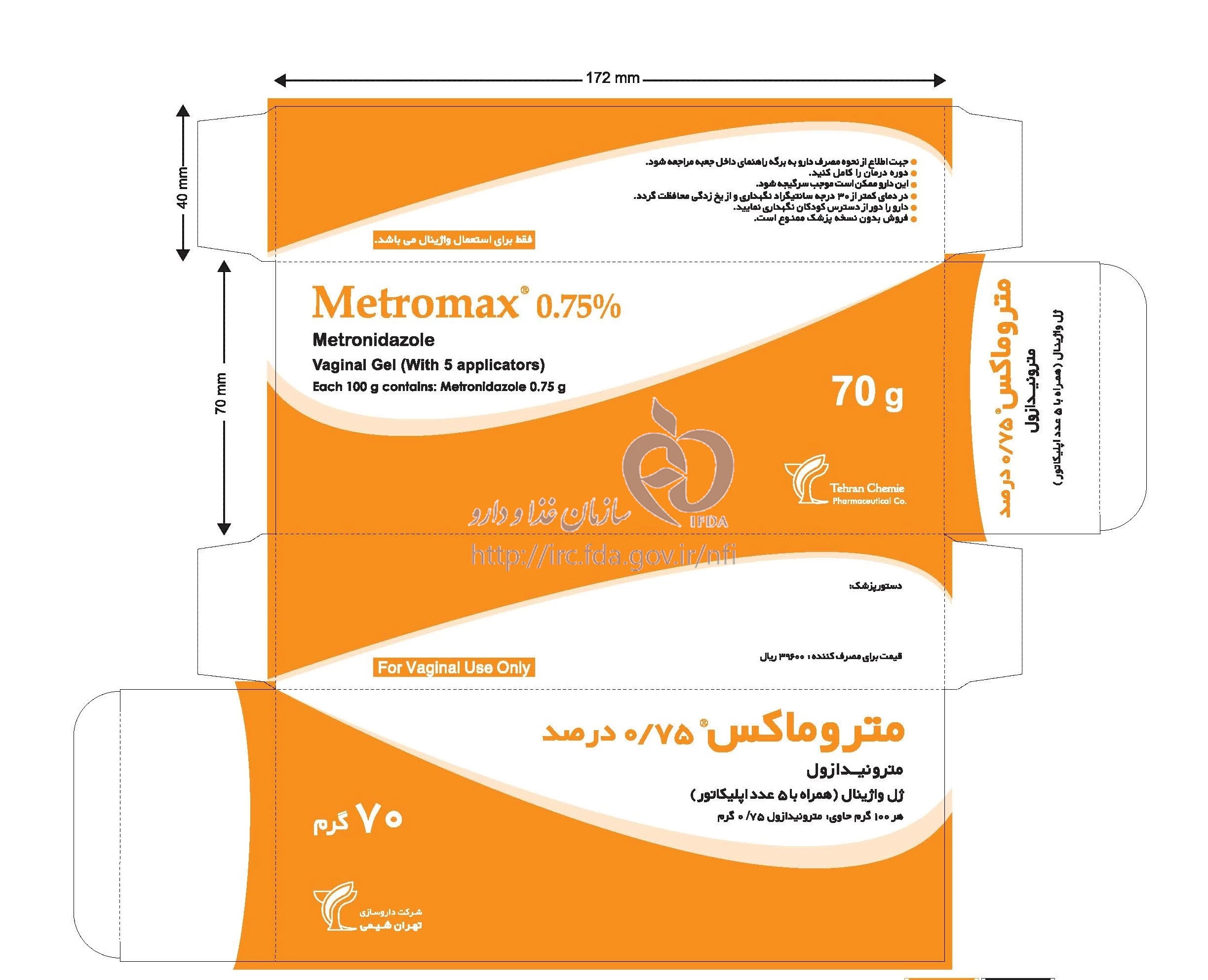 متروماکس ژل واژینال 0.75 % 70GRAM
