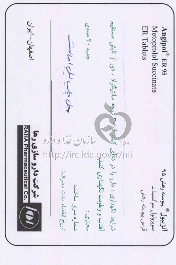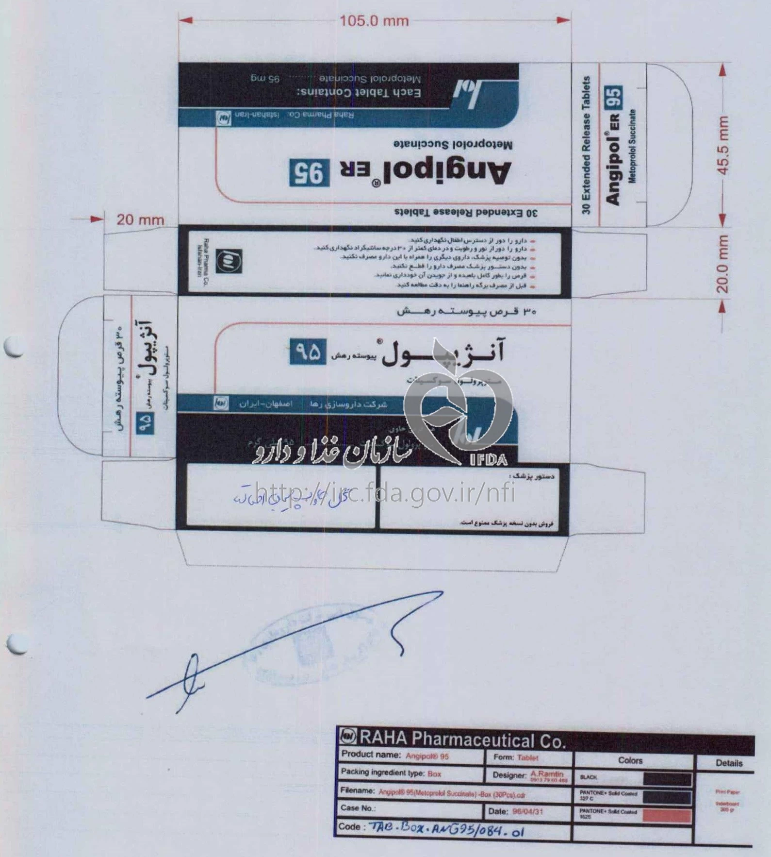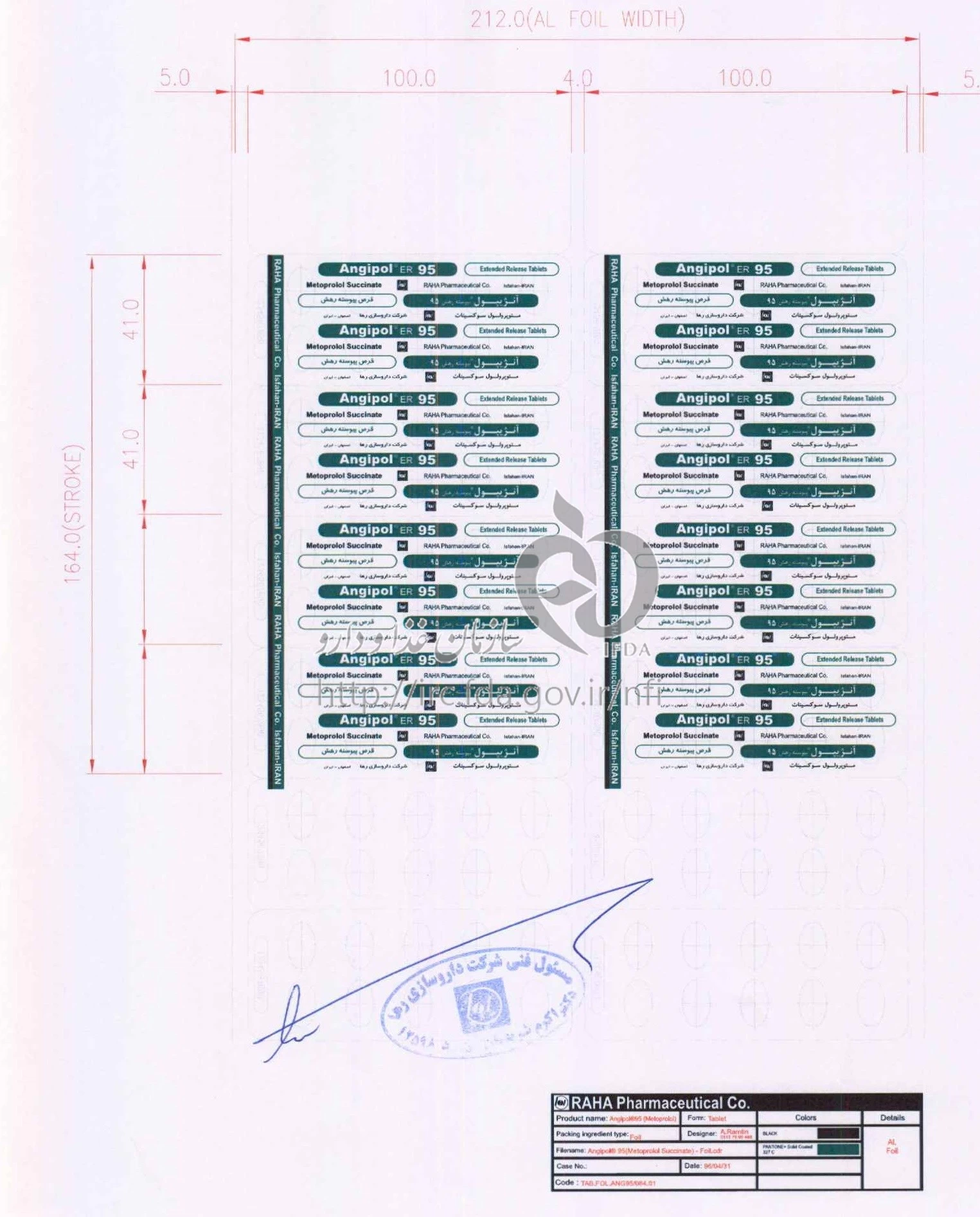 آنژيپول قرص پیوسته رهش خوراکی 95 mg