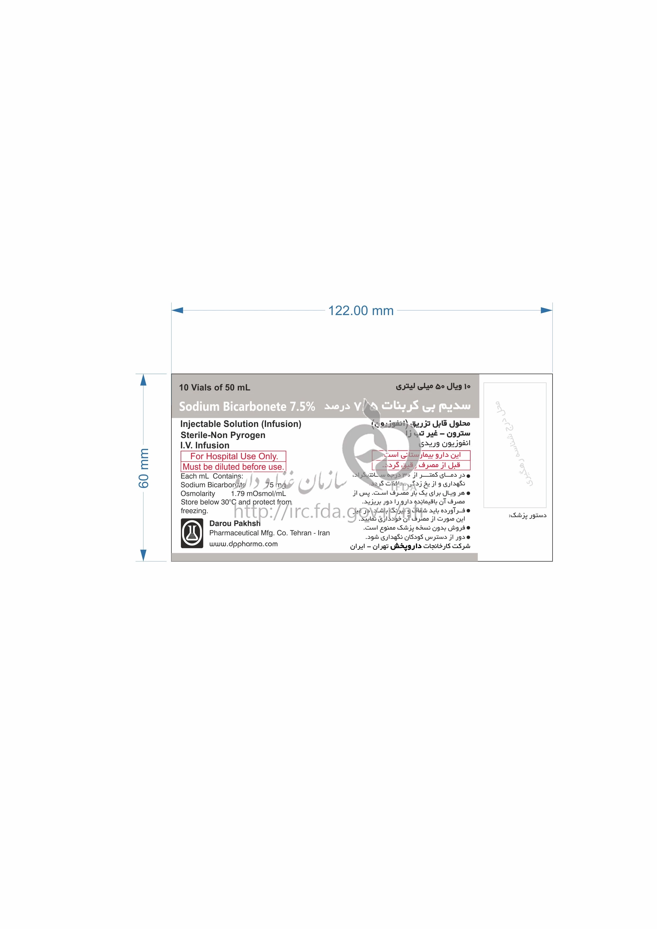 سدیم بی کربنات تزریقی پرنترال 7.5 % 50MILLILITER