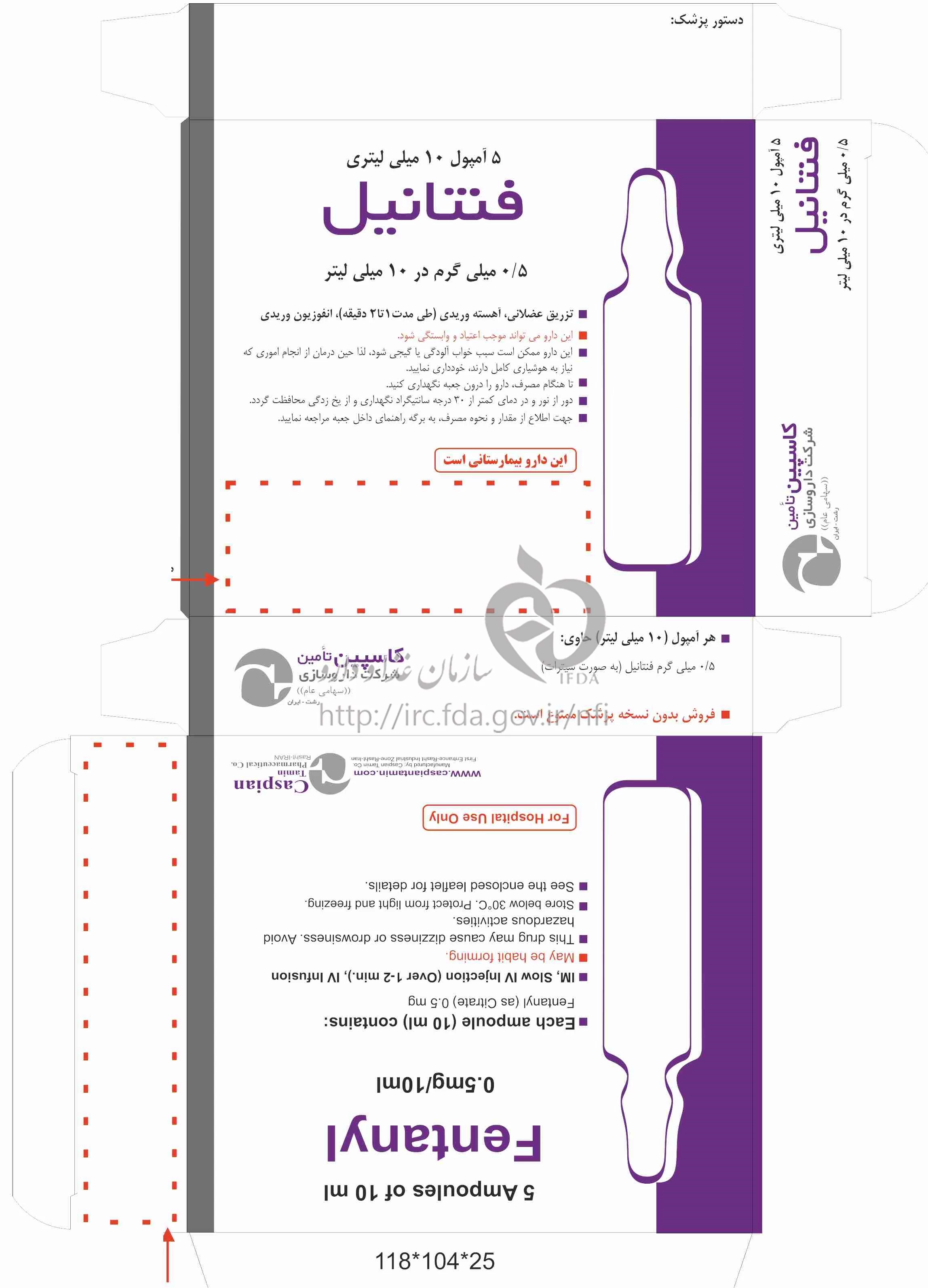 دکترها فنتانیل تزریقی پرنترال 50 ug/1mL 10MILLILITER