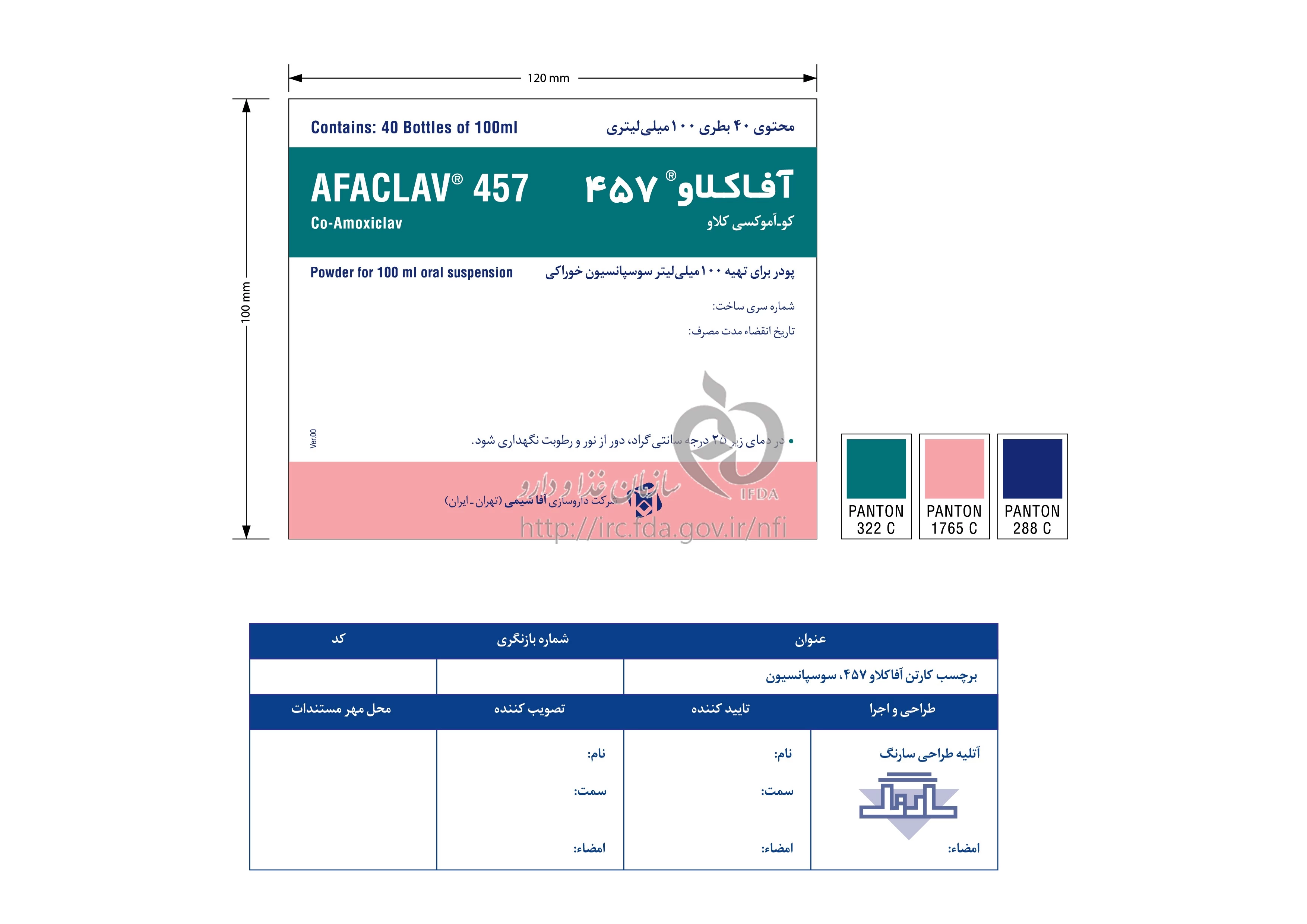 آفاکلاو پودر برای تهیه سوسپانسیون خوراکی 400 mg/57 mg/5 mL 100MILLILITER