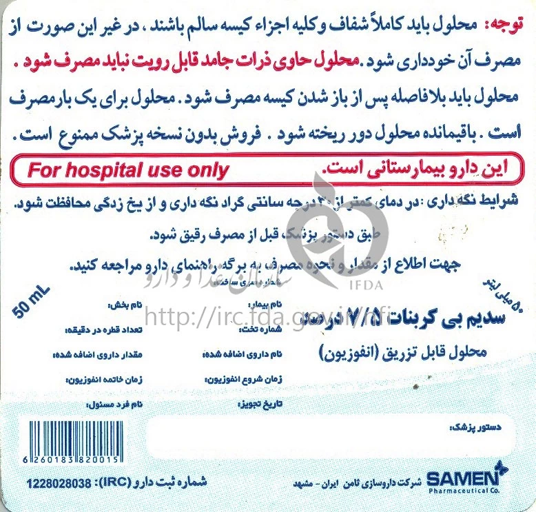 لیست ویدیو ها سدیم بیکربنات تزریقی پرنترال 7.5 % 50MILLILITER
