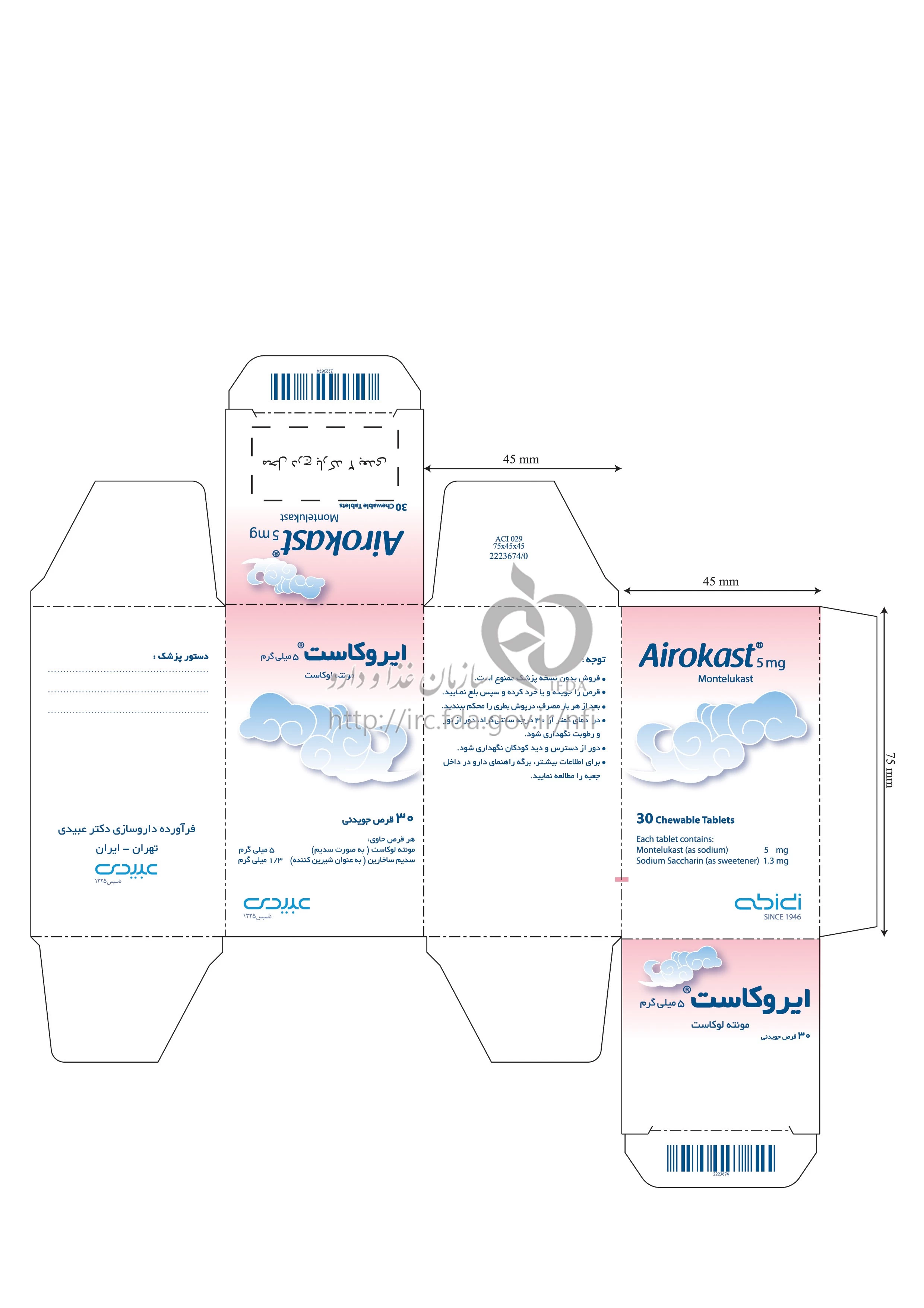 ایروکاست قرص جویدنی خوراکی 5 mg