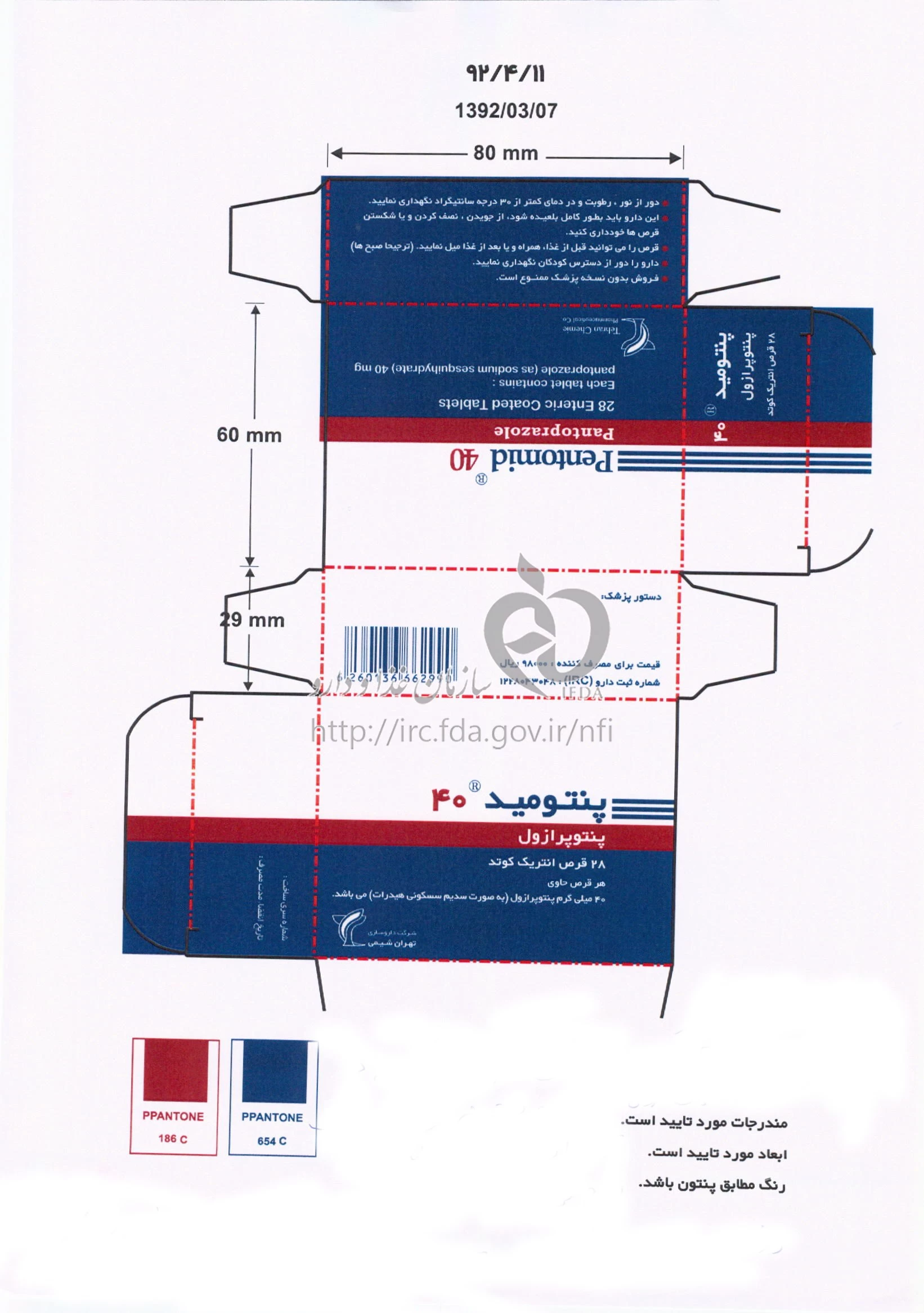 پنتومید قرص انتریک کوتد خوراکی 40 mg