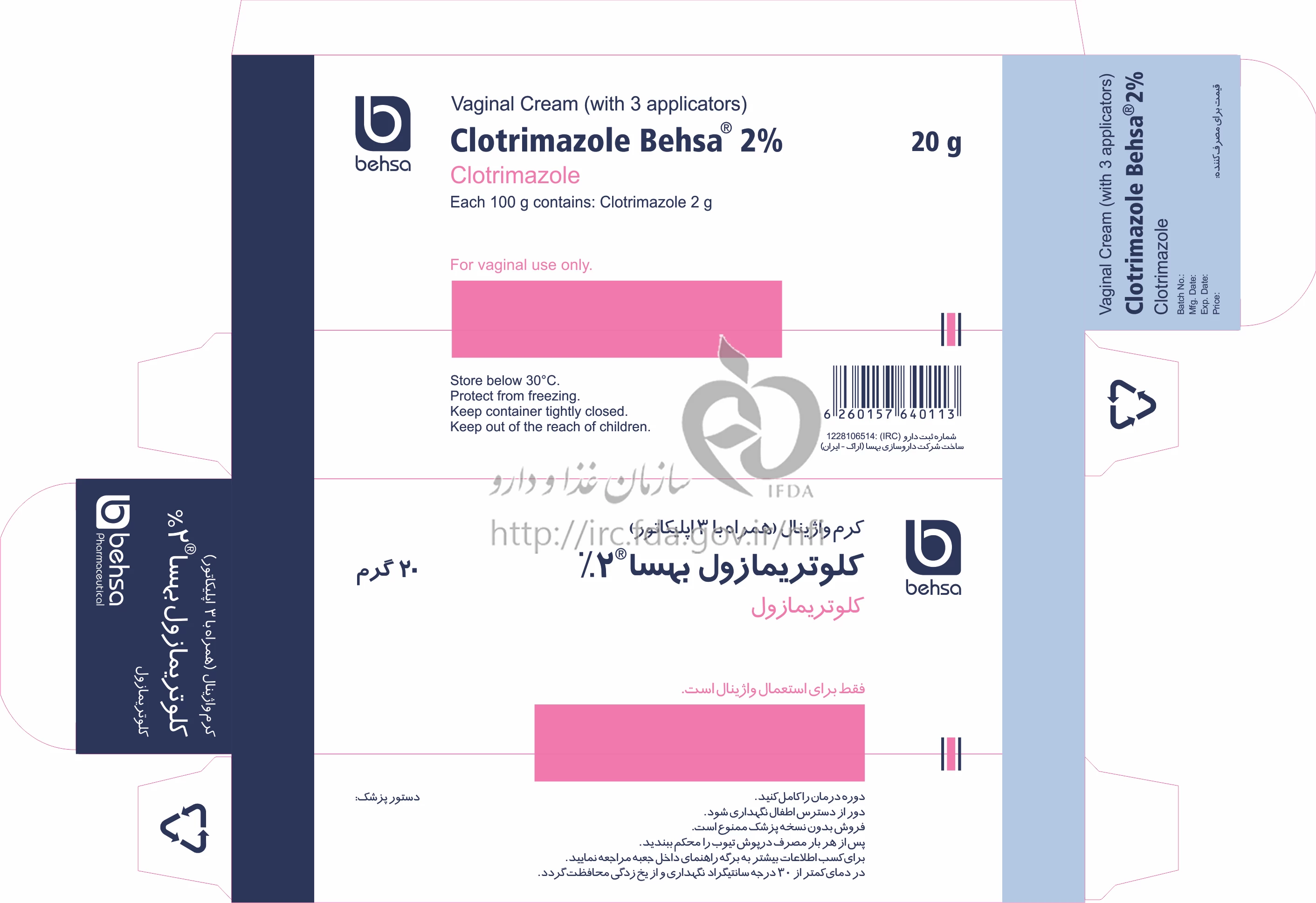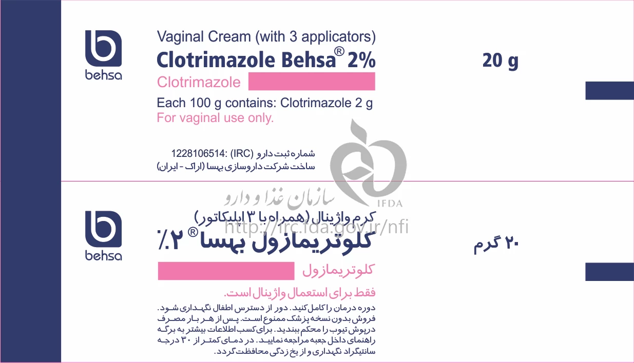 کلوتریمازول بهسا کرم واژینال 2 % 20GRAM