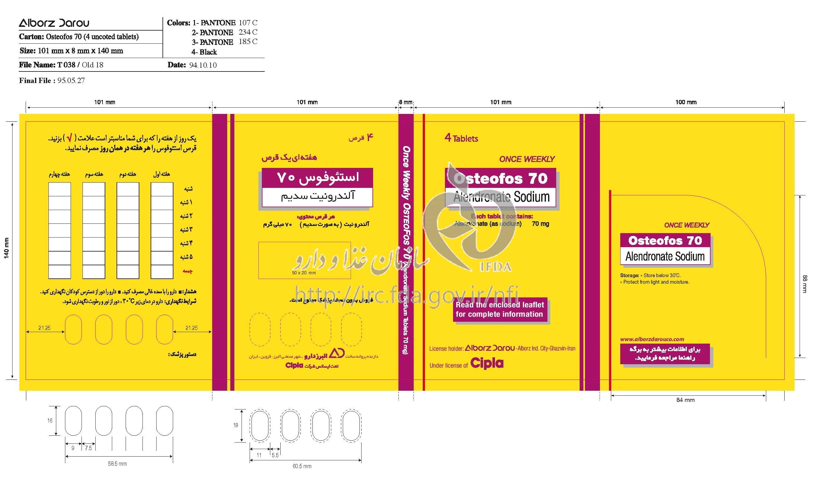 1- آلندرونات بايد 30 دقيقه قبل از مصرف اولين وعده غذا يا نوشيدني در هر روز استفاده گردد.2- از مصرف غذاهاي حاوي كلسيم بالا، ويتامين ‌ها همراه با مكمل‌ هاي معدني و آنتي-‌اسيدهاي حاوي مقادير فراوان فلزات، طي 2 ساعت از تجويز آلندرونات بايد خودداري گردد.3- دارو بايد با يك ليوان آب مصرف شده و بيمار تا نيم ساعت پس از مصرف دارو، در حالت خوابيده قرار نگيرد.4- اگر ميزان كلسيم و ويتامين D رژيم غذايي در حد كافي نمي ‌باشد، مكمل كلسيم (1500میلی گرم) و ويتامين D (U/day400) بايد براي بيمار تجويز گردد.