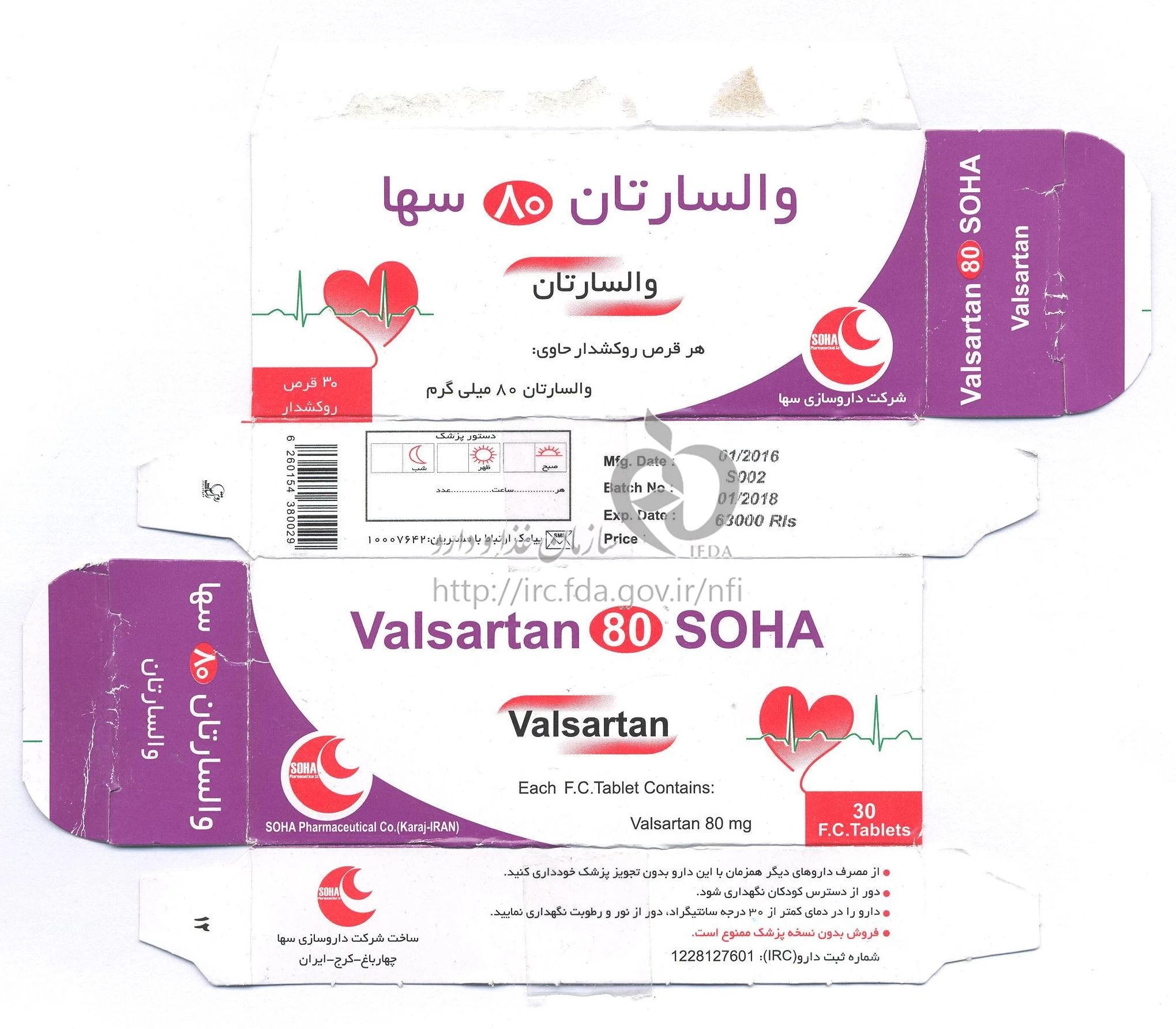 والسارتان سها قرص خوراکی 80 mg