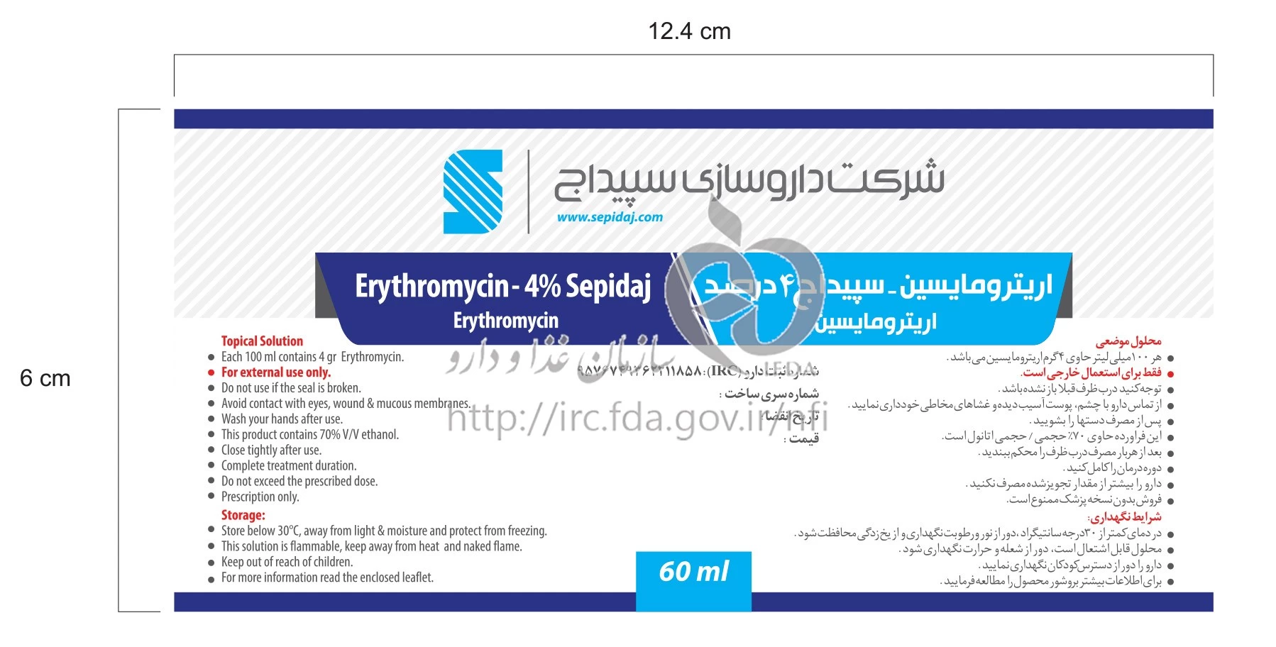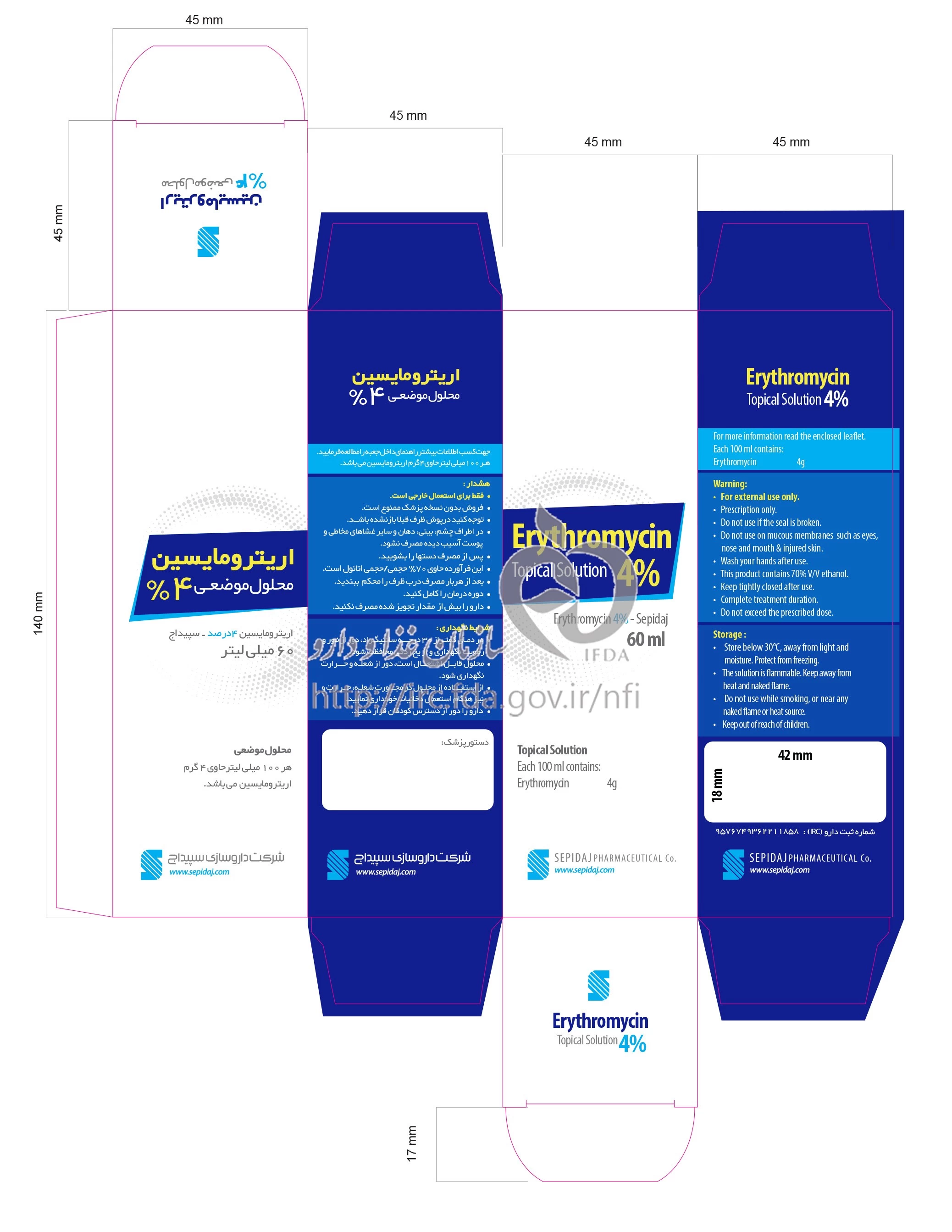 اریترومایسین - سپیداج محلول موضعی 4 % 60MILLILITER
