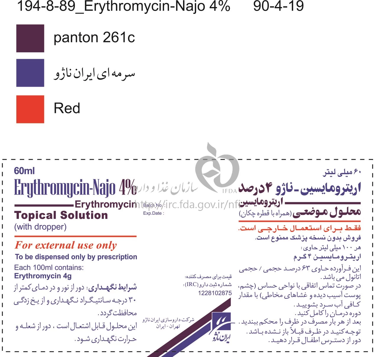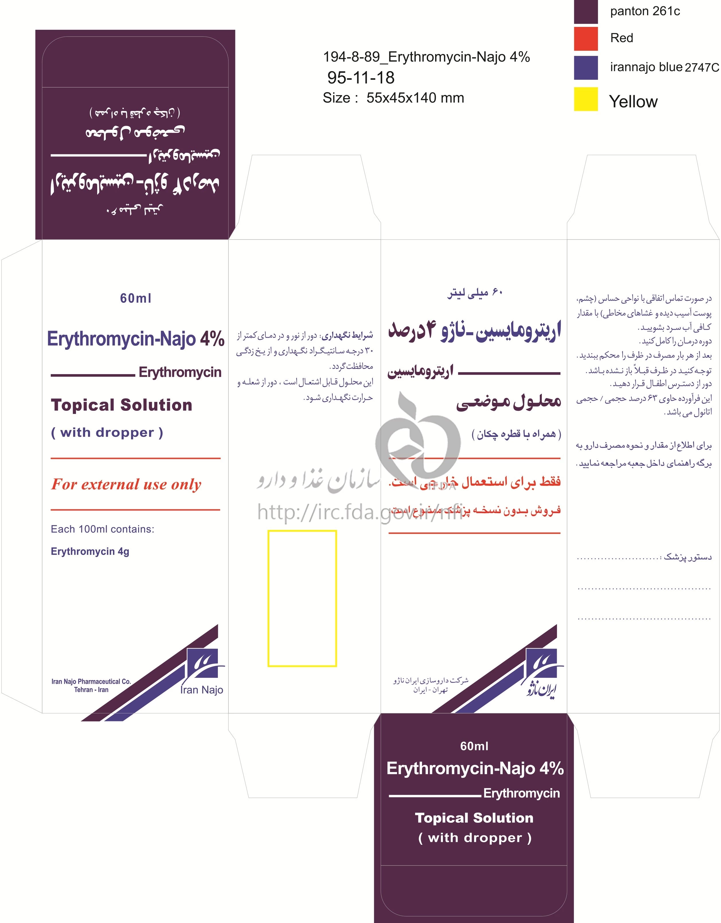 اریترومایسین - ناژو محلول موضعی 4 % 60MILLILITER