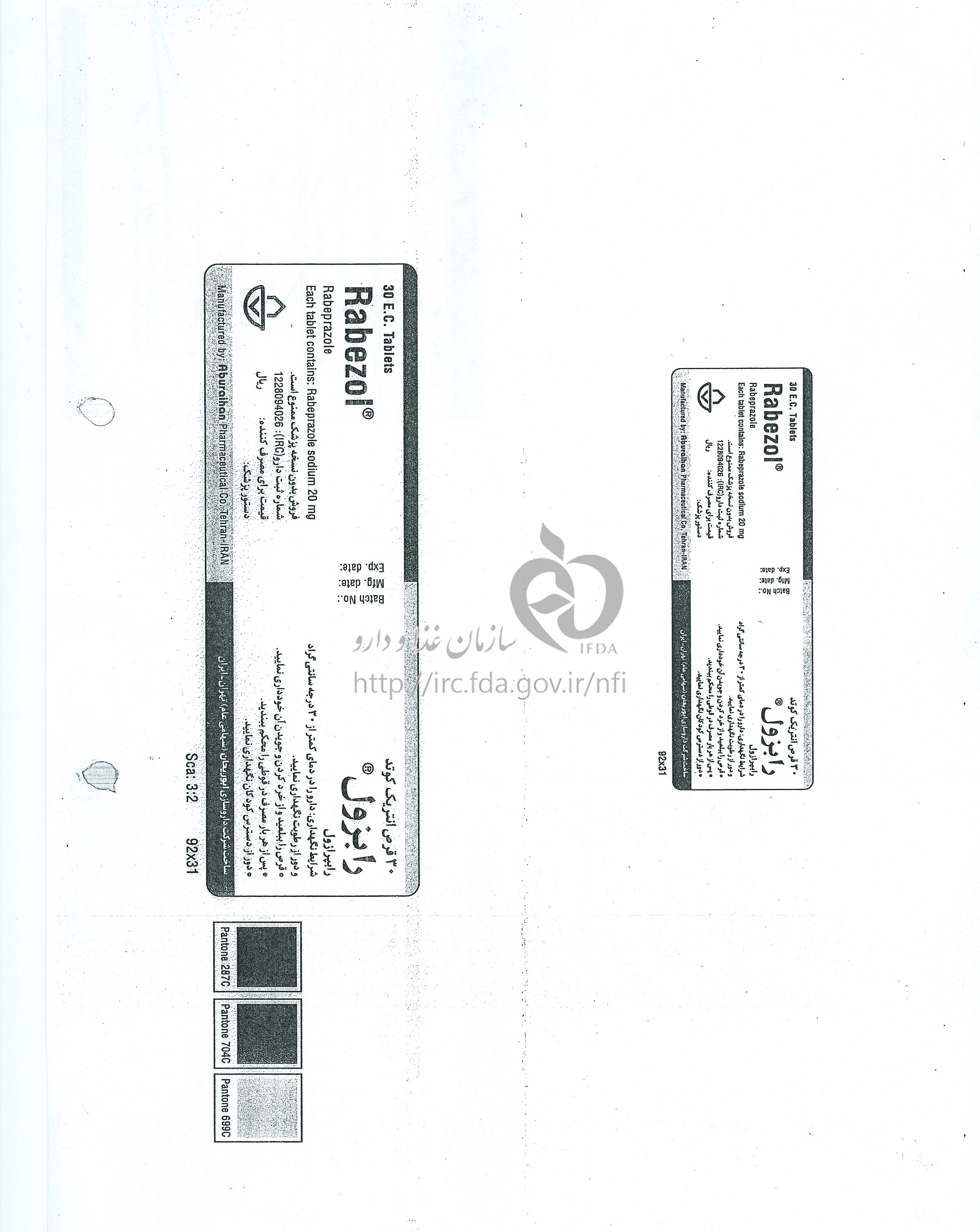 رابزول قرص انتریک کوتد خوراکی 20 mg