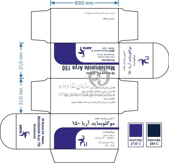 موکلوبماید آریا قرص خوراکی 150 mg