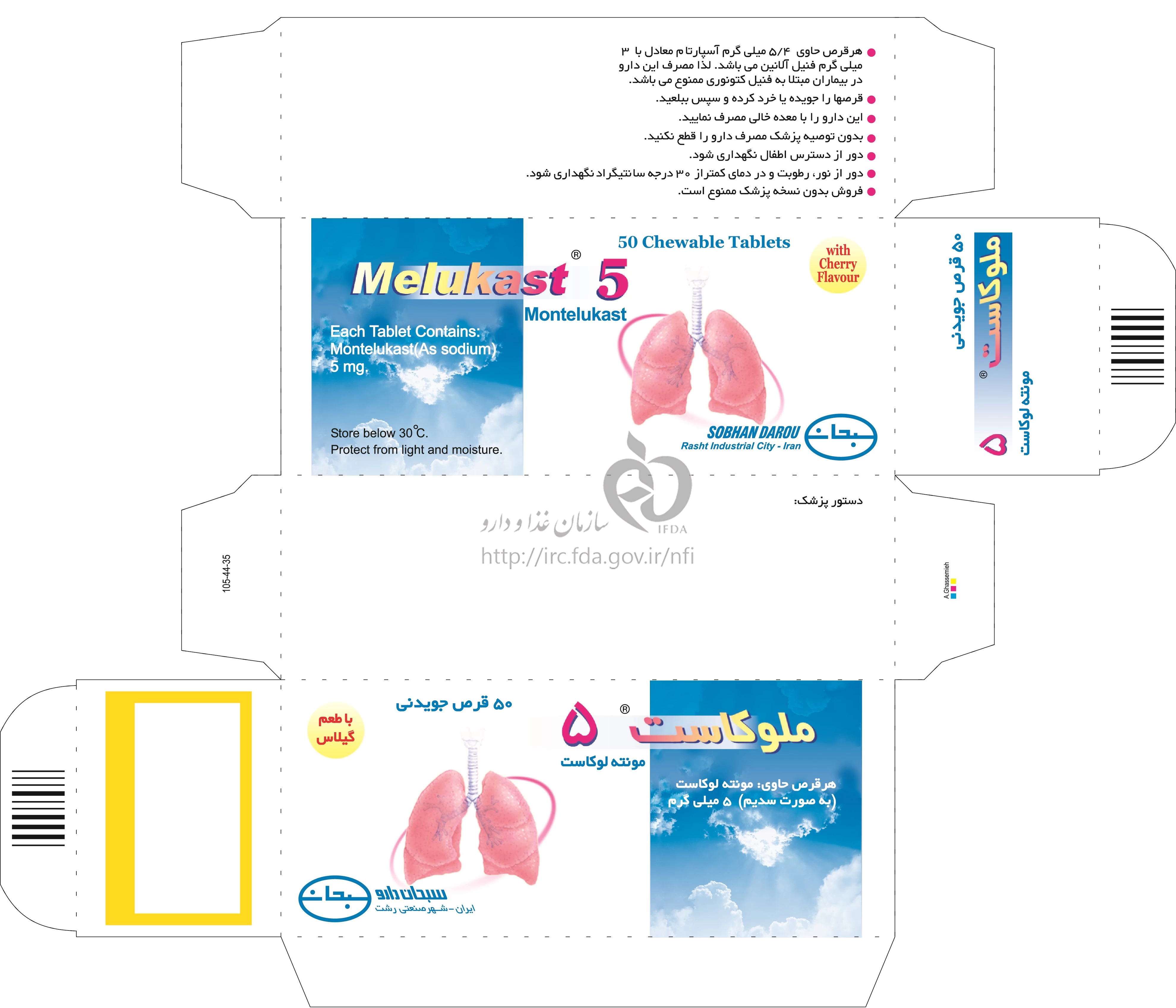 ملوکاست قرص جویدنی خوراکی 5 mg