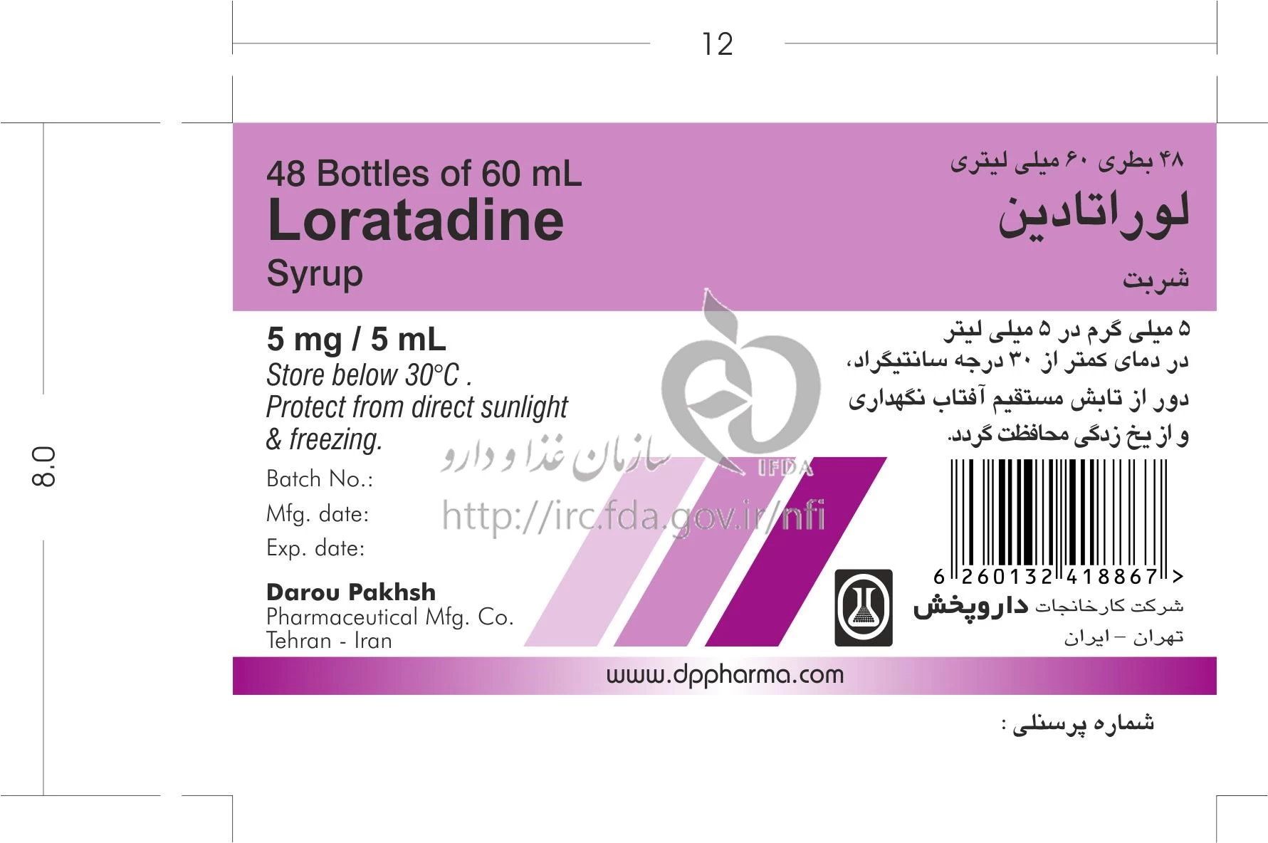 لوراتادین شربت خوراکی 5 mg/5 mL 60MILLILITER