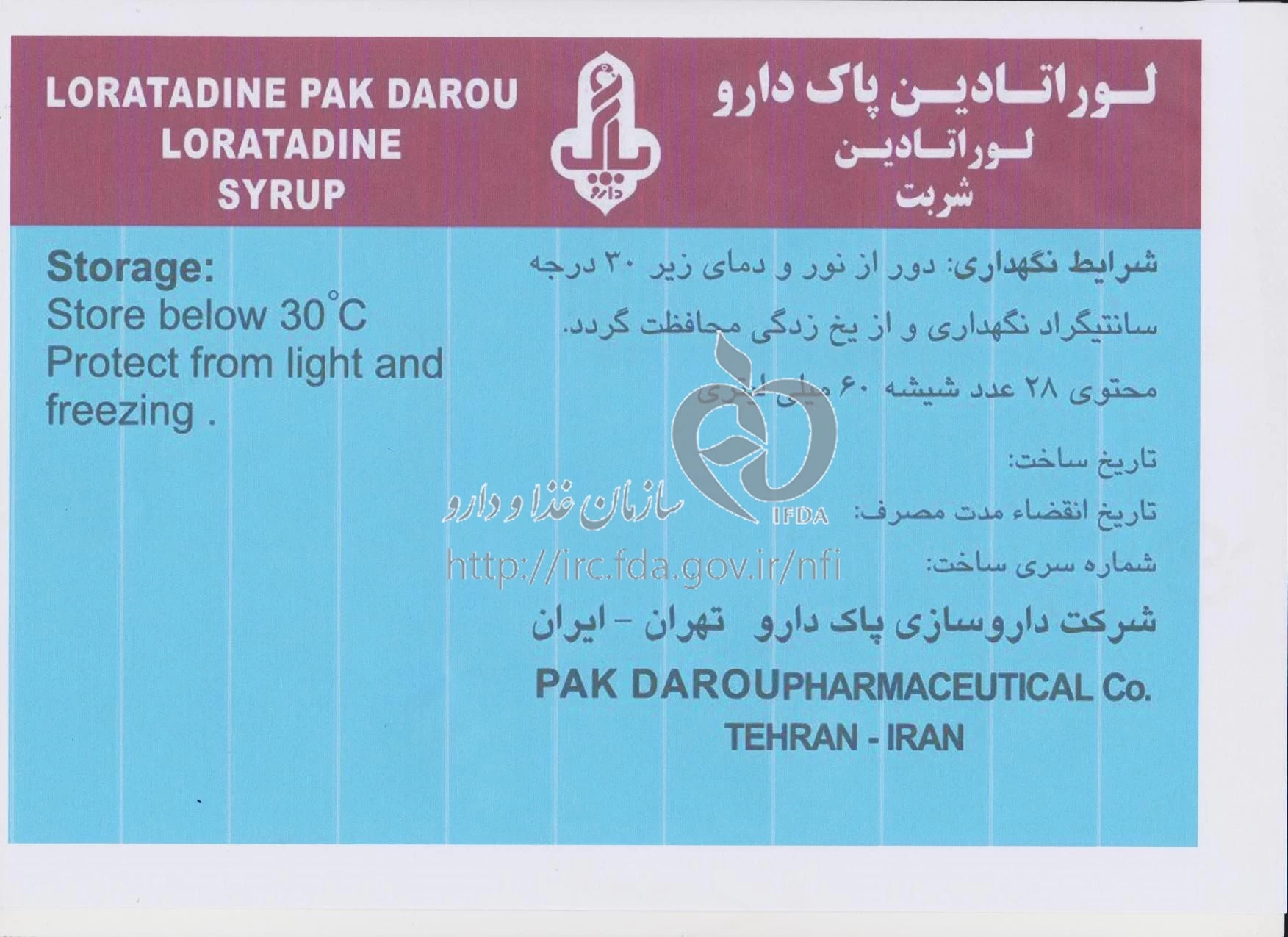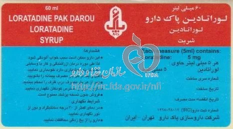 لوراتادین پاک دارو شربت خوراکی 5 mg/5 mL 60MILLILITER