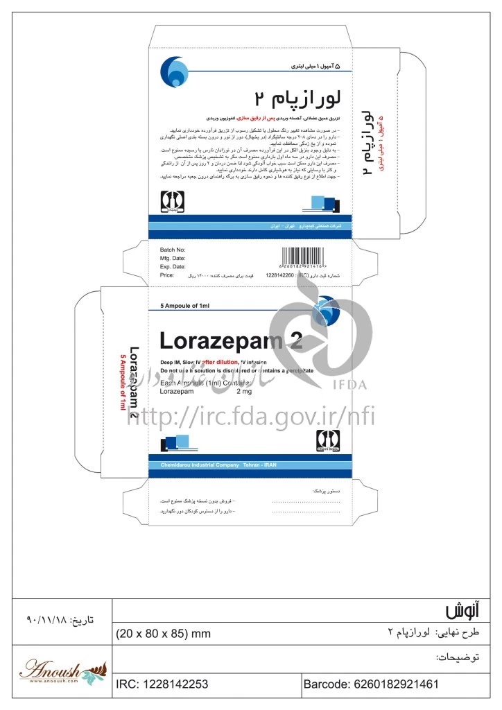 دکترها لورازپام تزریقی پرنترال 2 mg/1mL