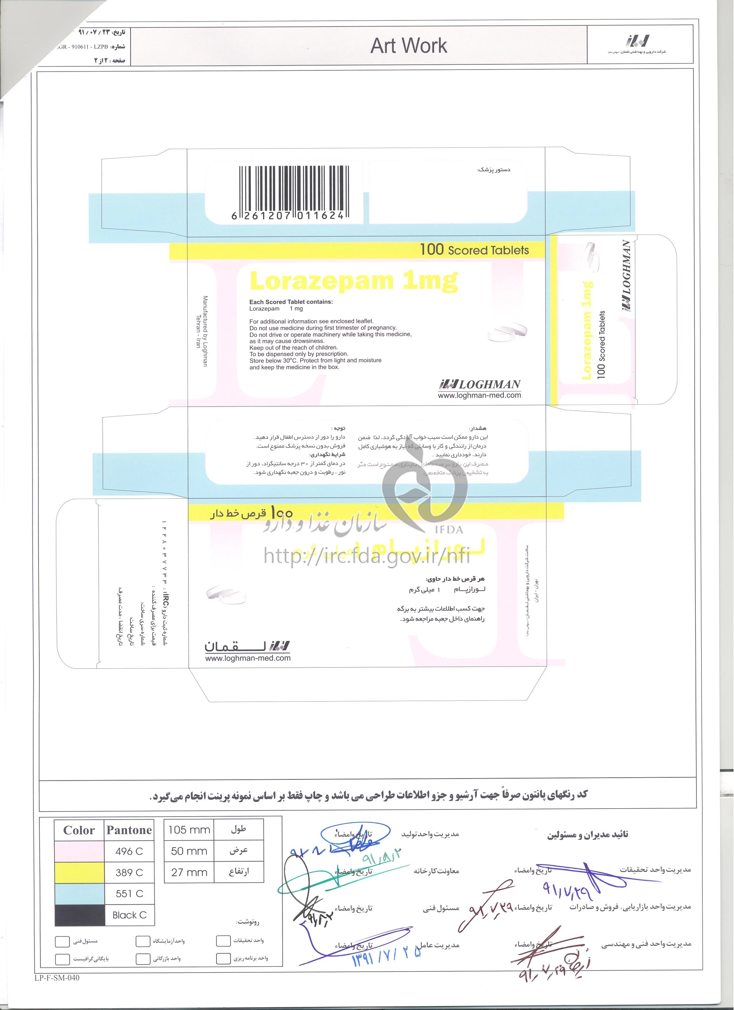 نکات قابل توصیه لورازپام قرص خوراکی 1 mg