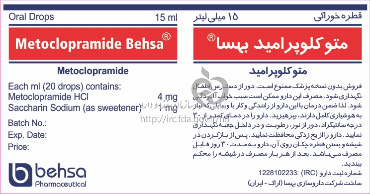 متوکلوپرامید محلول ، قطره خوراکی 4 mg/1mL 15MILLILITER